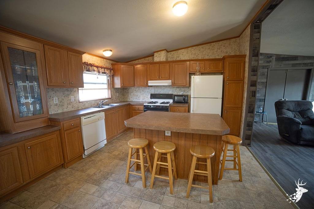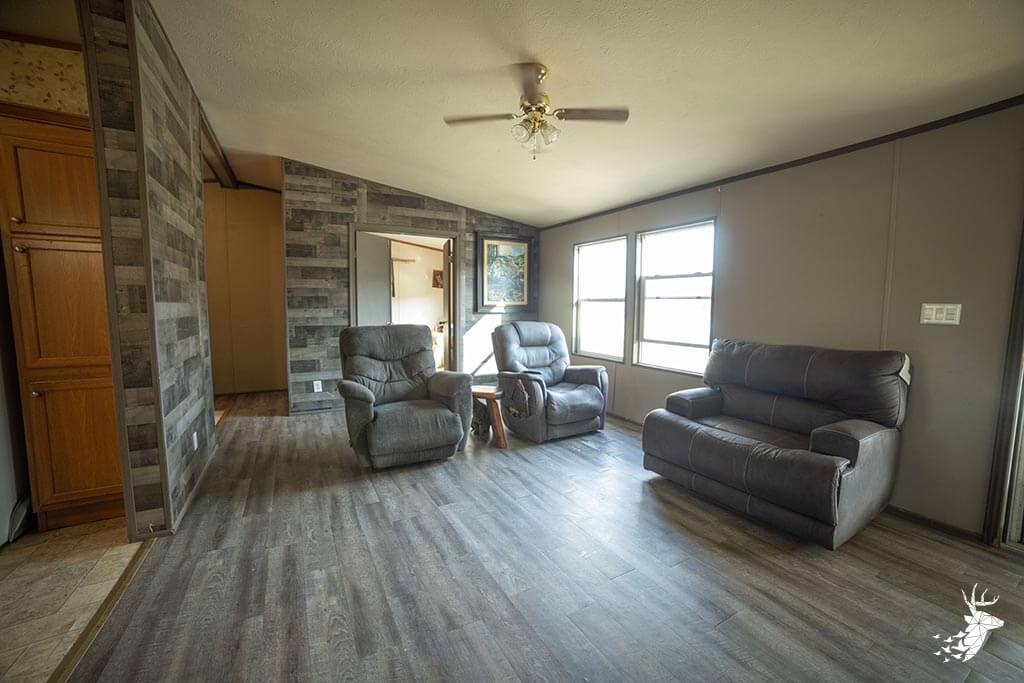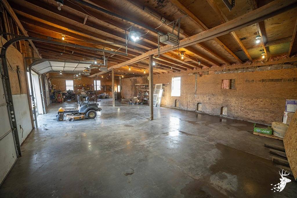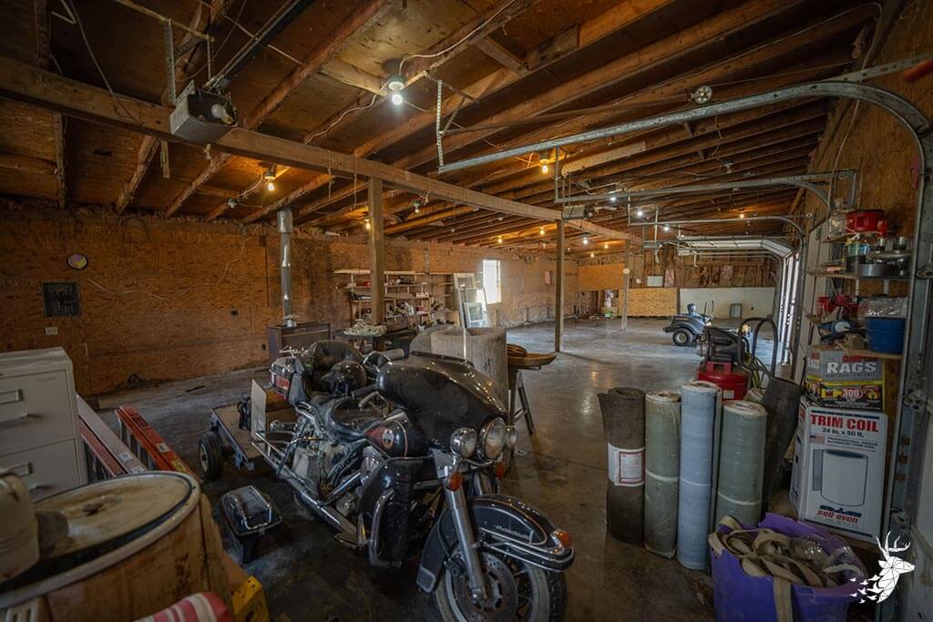 The home features a comfortable living room, spacious kitchen, and a large covered back deck perfect for relaxing after a day outdoors. A 4-car garage with overhead doors provides plenty of vehicle and equipment storage, while the barn offers two long bays, one with a large overhead door ideal for RV or camper storage. An unfinished upper level in the barn offers additional potential.
