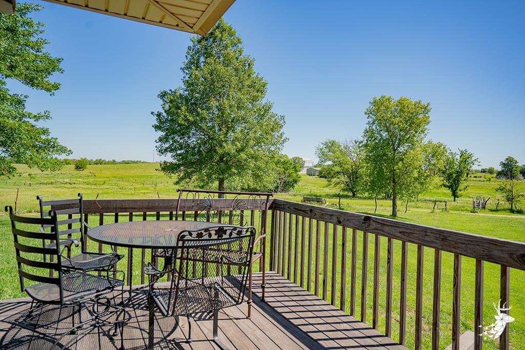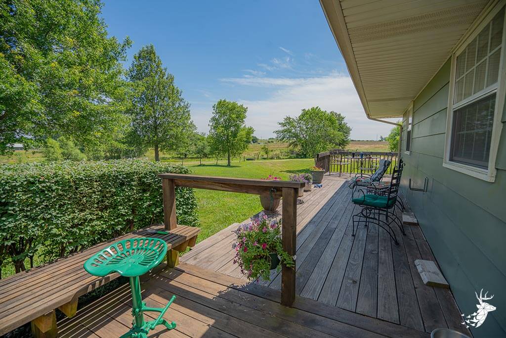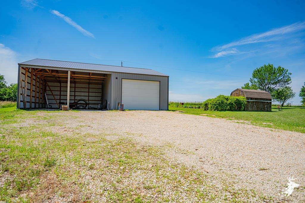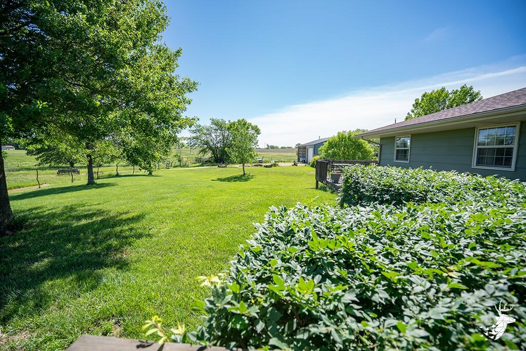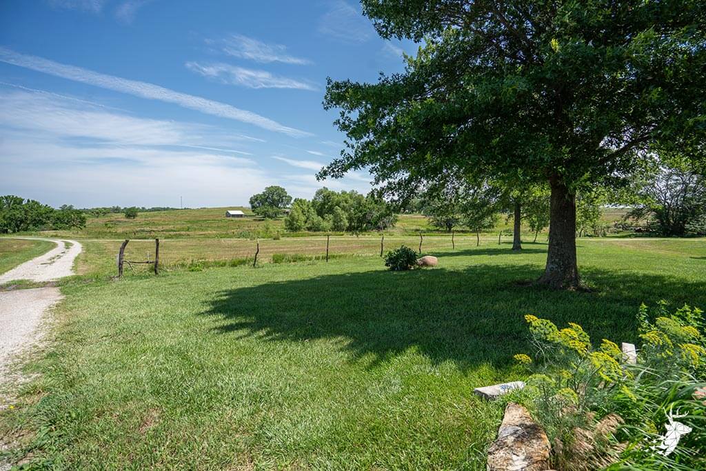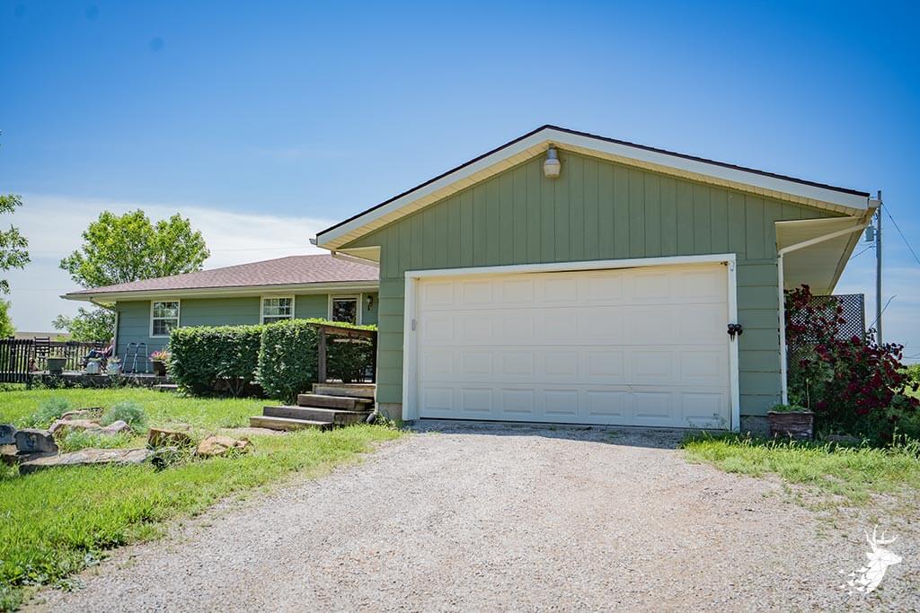 Long driveway, and excellent panoramic country views from the wrap around deck with your early morning coffee watching the wildlife over the countryside! This walk-out ranch home with 12.5 m/l acres is conveniently located less than a quarter mile from 75 HWY and pavement, making an easy work commute to Topeka, Lawrence, Holton or Manhattan. 3 bedroom (1 nonconforming) 3 bath home with new Custom Eubank’s- Cherry wood kitchen, large bedrooms and beautiful hardwood floors thru-out! Basement with so much potential! Full partially finished walkout with small kitchenette, full bath, great shelving/ storage and family space to sit around the woodburning stove on movie night / entertaining. Setup for your 4H livestock projects with a couple nice grass paddocks, and a few acres of hay meadow, rural water at the home and well water for livestock and your great established gardening space with a few apple trees for the family to enjoy! And you can’t miss with the newer built Chris Gross construction 42′ x 24′ shop with 220 electric with concrete floors and additional 42′ x 30′ to store the toys and equipment! Welcome home to the country!