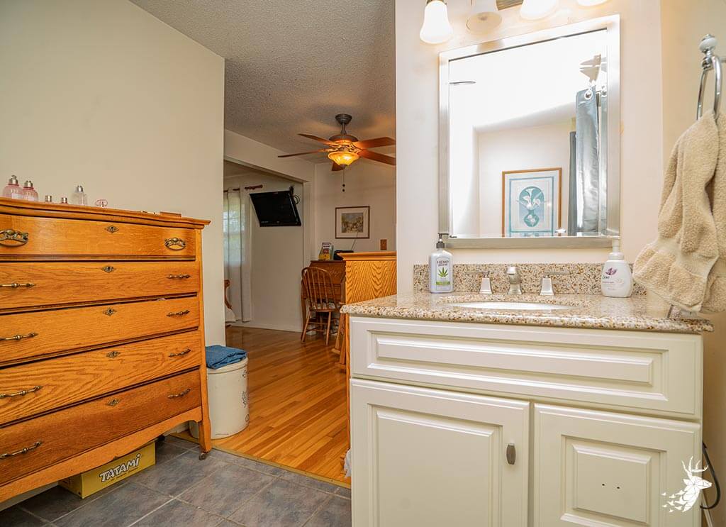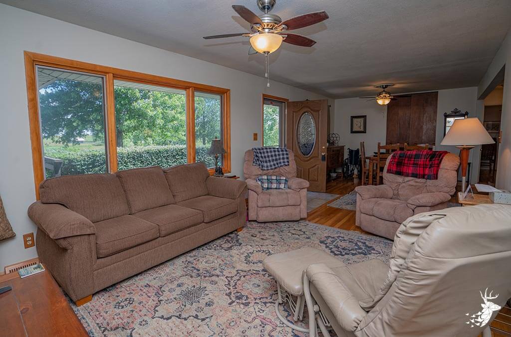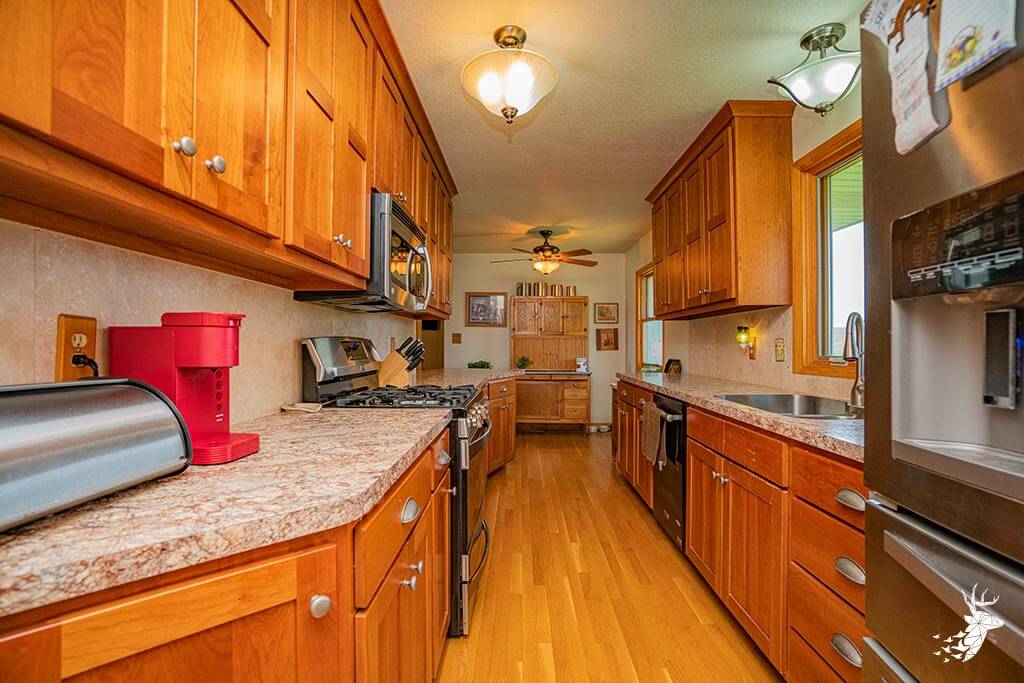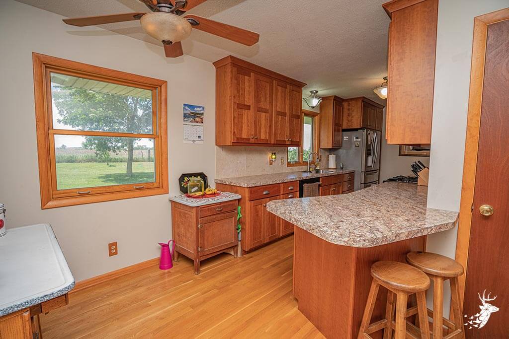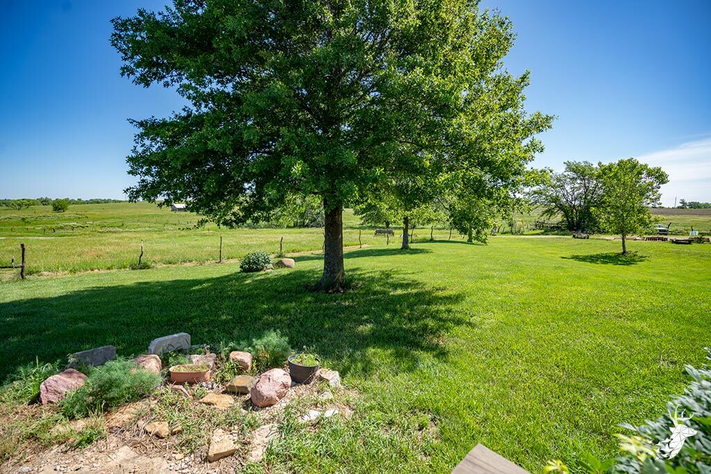 Long driveway, and excellent panoramic country views from the wrap around deck with your early morning coffee watching the wildlife over the countryside! This walk-out ranch home with 12.5 m/l acres is conveniently located less than a quarter mile from 75 HWY and pavement, making an easy work commute to Topeka, Lawrence, Holton or Manhattan. 3 bedroom (1 nonconforming) 3 bath home with new Custom Eubank’s- Cherry wood kitchen, large bedrooms and beautiful hardwood floors thru-out! Basement with so much potential! Full partially finished walkout with small kitchenette, full bath, great shelving/ storage and family space to sit around the woodburning stove on movie night / entertaining. Setup for your 4H livestock projects with a couple nice grass paddocks, and a few acres of hay meadow, rural water at the home and well water for livestock and your great established gardening space with a few apple trees for the family to enjoy! And you can’t miss with the newer built Chris Gross construction 42′ x 24′ shop with 220 electric with concrete floors and additional 42′ x 30′ to store the toys and equipment! Welcome home to the country!