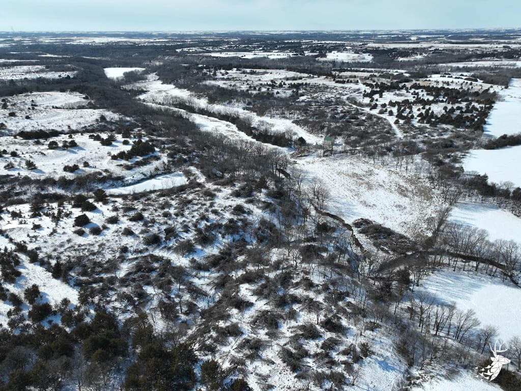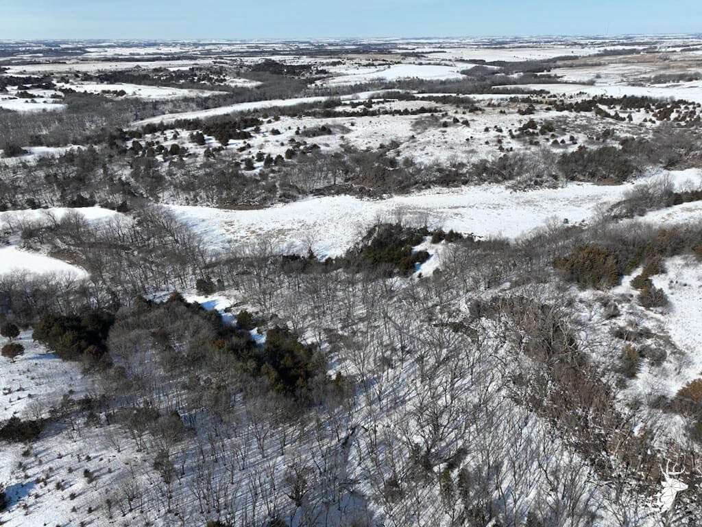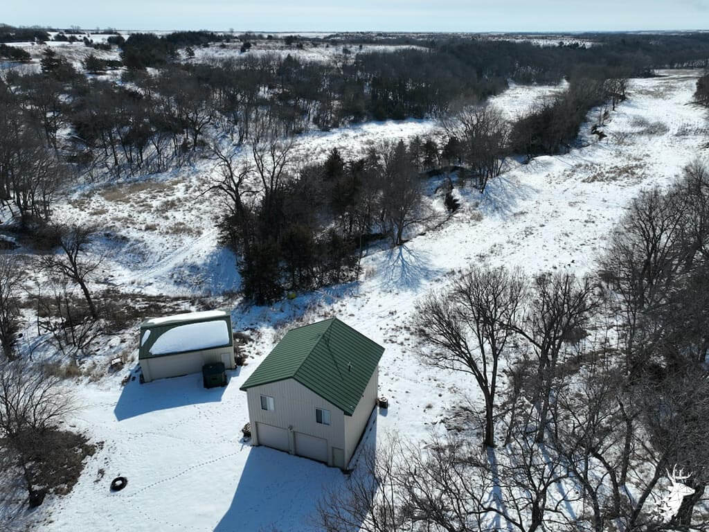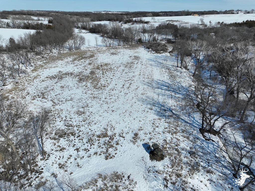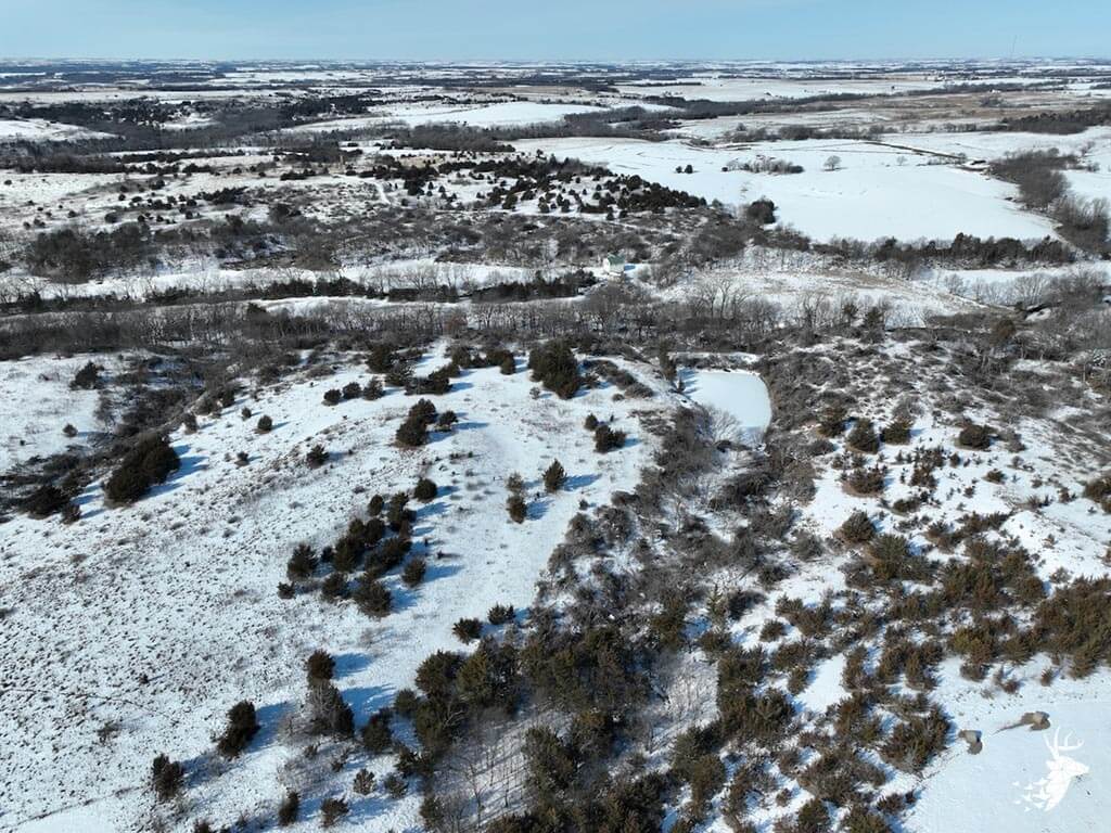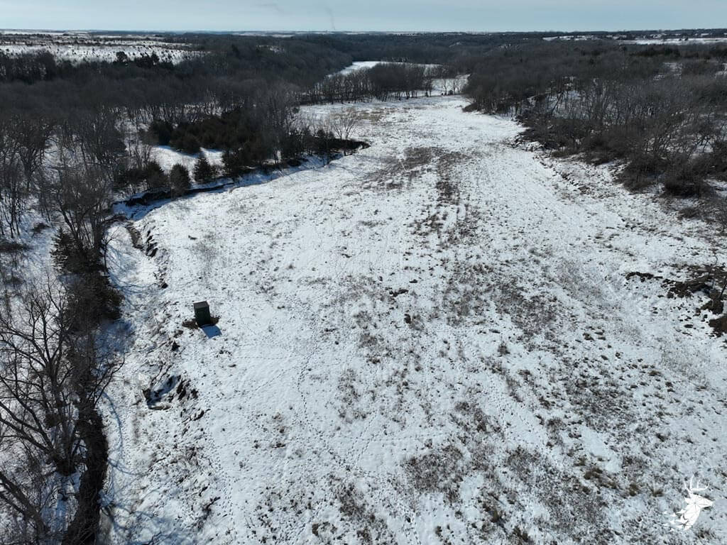 This 187 m/l acre ranch sits in the heart of big buck country. Kansas was put on the map for giant whitetails in the late 90s. Pottawatomie county was part of the awakening with a nontypical state archery record and several BC book deer to follow. The magic of the Flint Hills grew some giant whitetails with the help of large alfalfa fields, soybean and corn fields. The QDMA in the area to grow 200 inch whitetails has been embedded for several decades. Farms in the area do not come up for sale often. Located a couple miles from Olsburg, KS and a short commute to Manhattan also known as the “Little Apple”. This property meets the needs of the evolving whitetail hunter with several management plans in place to improve the hunting and overall deer herd. Whether you’re a bow or gun hunter this property lays out to have hunting success. Several areas along the flowing creek have been cleared to expand food plots or ag harvesting along with several TSI projects that have been already implemented. There is a natural spring and stocked pond which adds additional water sources for local wildlife and provides fishing entertainment with a variety of species including bass, crappie, bluegill and catfish. The variety of trail-cam pics provide plenty of intel and history of trophy bucks that have frequented the property. The furnished lodge offers plenty of room for the entire family or hunting partners. The two-story secluded home sits in the center of the property and has incredible views of the food plots and timbered creek lines. The house is connected to rural water. Two bedrooms and a full bath with an open kitchen/living room adds the perfect touch for the weekend getaways or dedicated long weeks of rut hunting. Additional features include washer, dryer and new HVAC. The attached garage allows for parking as well as extra storage for gear. The detached shop is perfect for UTV’s or skinning deer. Hunting retreats of this caliber don’t last long on the market. Call for a showing today!