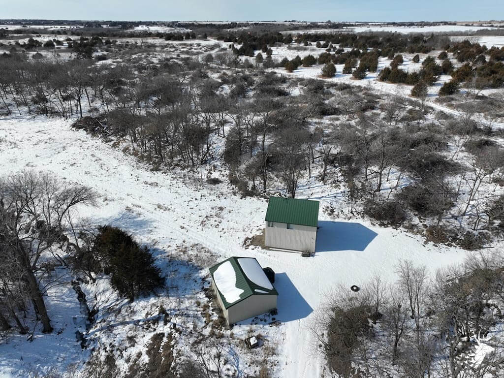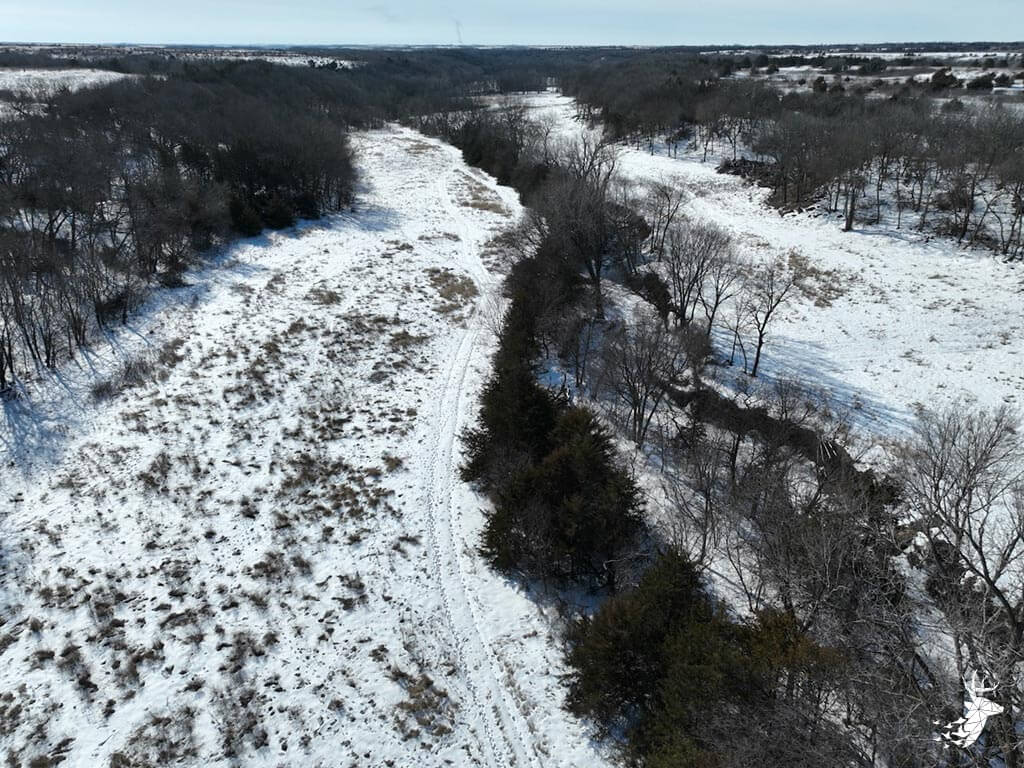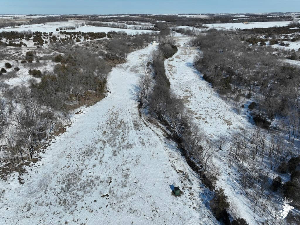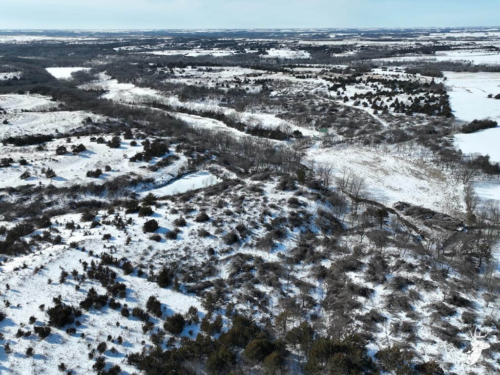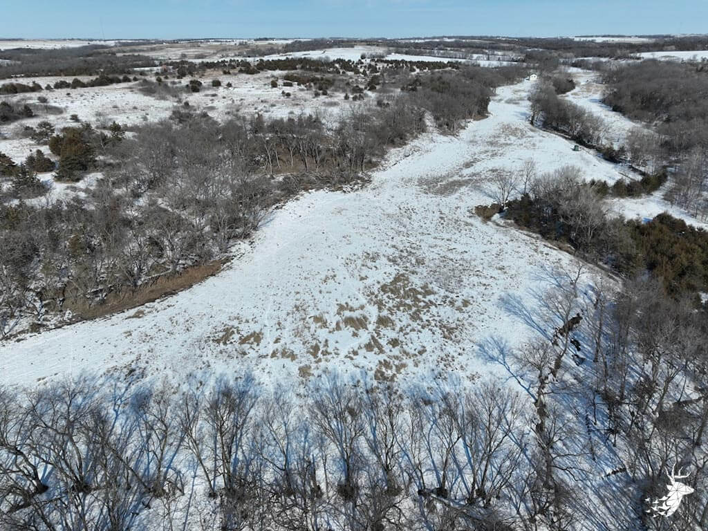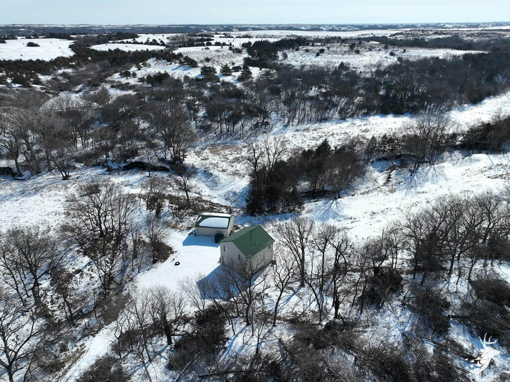 This 187 m/l acre ranch sits in the heart of big buck country. Kansas was put on the map for giant whitetails in the late 90s. Pottawatomie county was part of the awakening with a nontypical state archery record and several BC book deer to follow. The magic of the Flint Hills grew some giant whitetails with the help of large alfalfa fields, soybean and corn fields. The QDMA in the area to grow 200 inch whitetails has been embedded for several decades. Farms in the area do not come up for sale often. Located a couple miles from Olsburg, KS and a short commute to Manhattan also known as the “Little Apple”. This property meets the needs of the evolving whitetail hunter with several management plans in place to improve the hunting and overall deer herd. Whether you’re a bow or gun hunter this property lays out to have hunting success. Several areas along the flowing creek have been cleared to expand food plots or ag harvesting along with several TSI projects that have been already implemented. There is a natural spring and stocked pond which adds additional water sources for local wildlife and provides fishing entertainment with a variety of species including bass, crappie, bluegill and catfish. The variety of trail-cam pics provide plenty of intel and history of trophy bucks that have frequented the property. The furnished lodge offers plenty of room for the entire family or hunting partners. The two-story secluded home sits in the center of the property and has incredible views of the food plots and timbered creek lines. The house is connected to rural water. Two bedrooms and a full bath with an open kitchen/living room adds the perfect touch for the weekend getaways or dedicated long weeks of rut hunting. Additional features include washer, dryer and new HVAC. The attached garage allows for parking as well as extra storage for gear. The detached shop is perfect for UTV’s or skinning deer. Hunting retreats of this caliber don’t last long on the market. Call for a showing today!