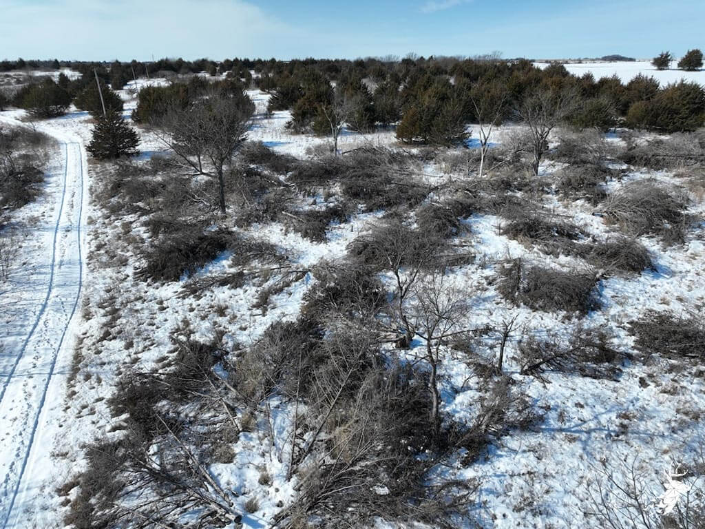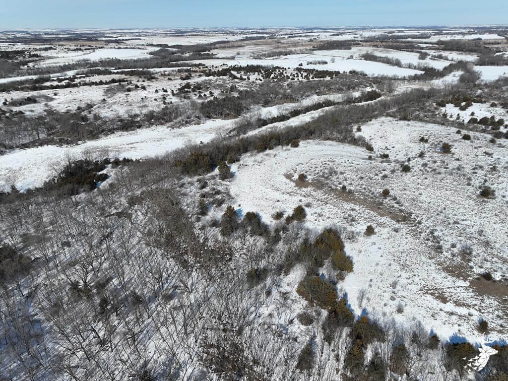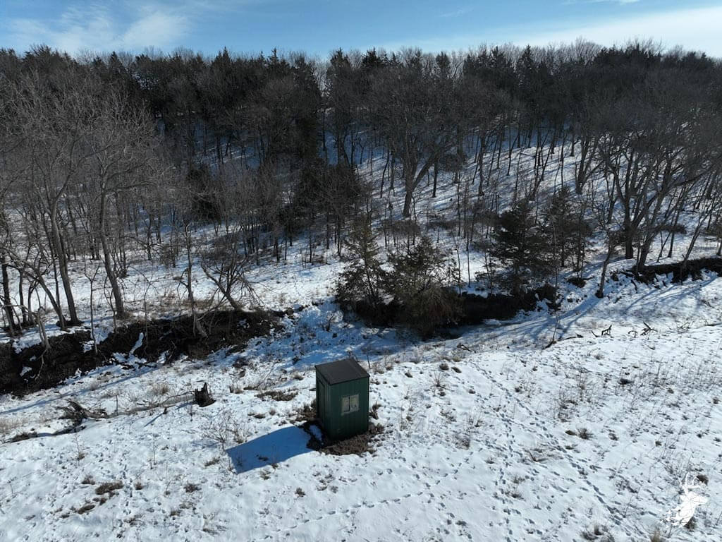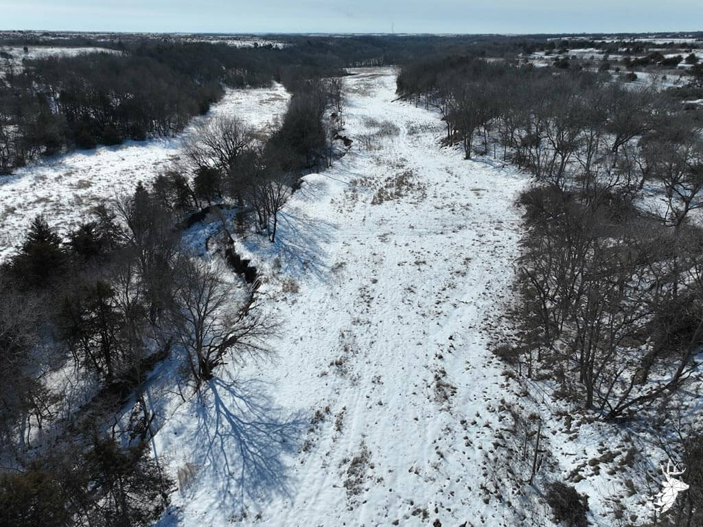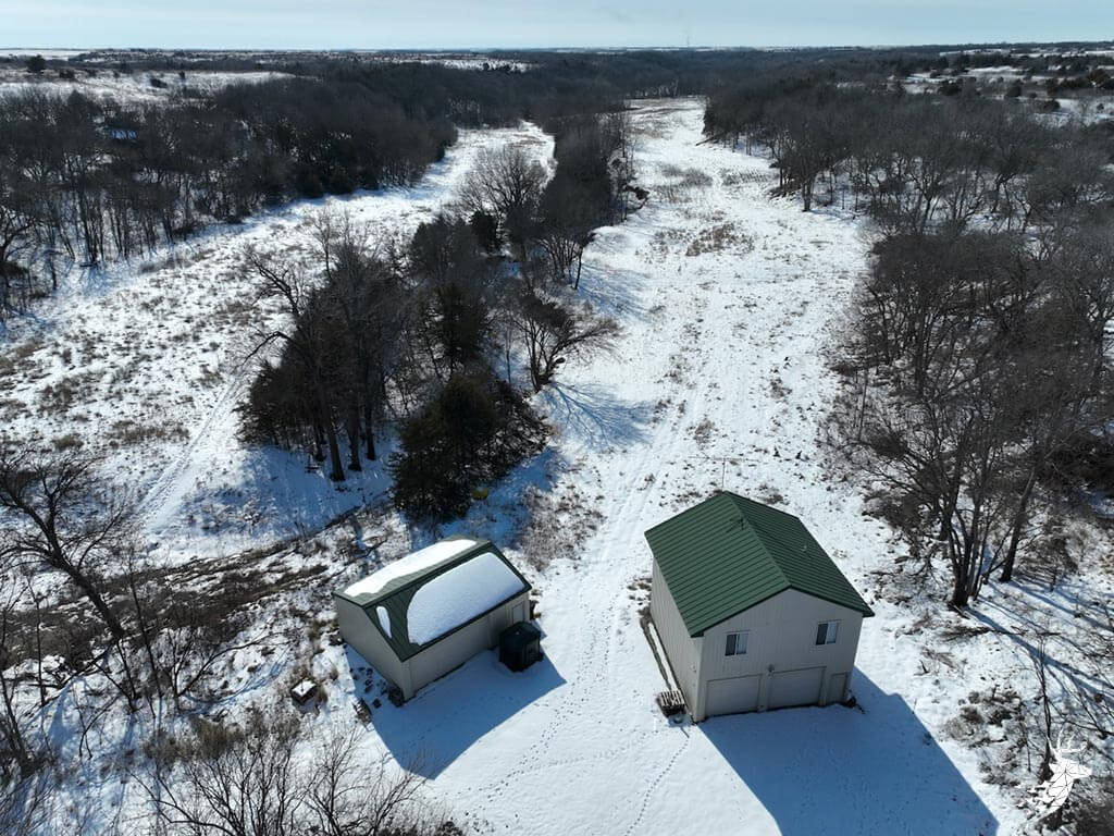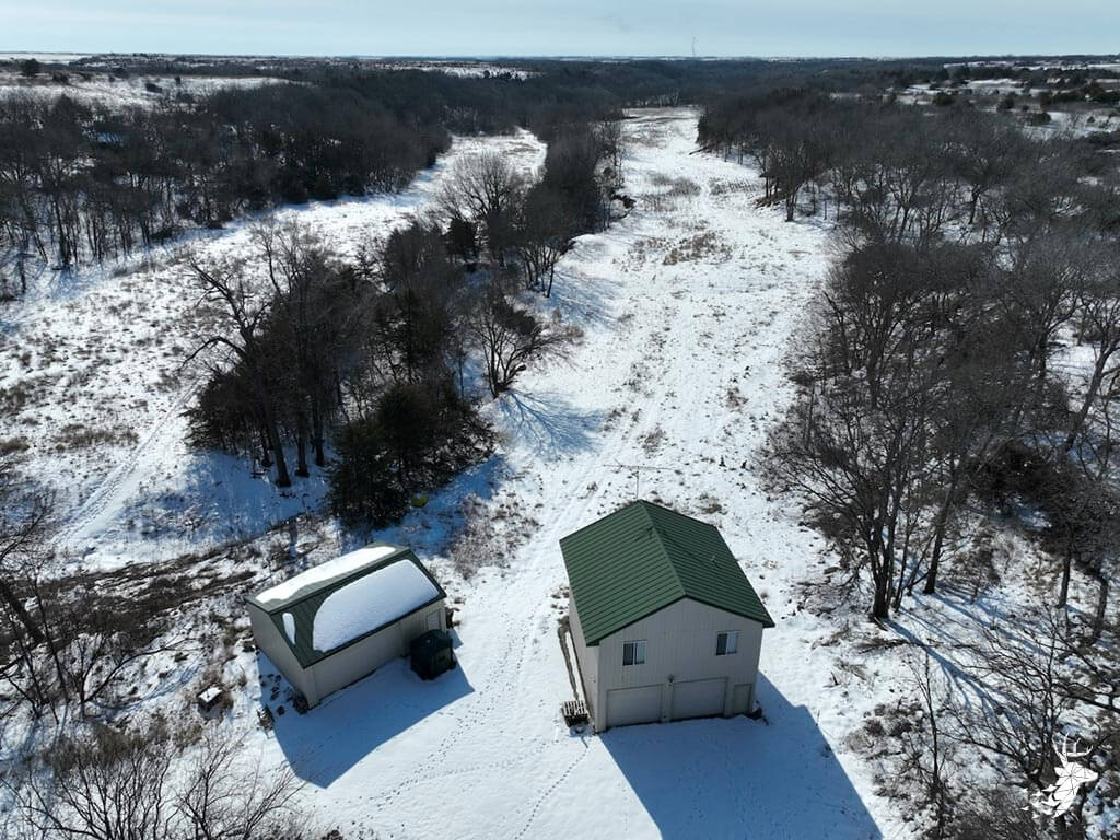 This 187 m/l acre ranch sits in the heart of big buck country. Kansas was put on the map for giant whitetails in the late 90s. Pottawatomie county was part of the awakening with a nontypical state archery record and several BC book deer to follow. The magic of the Flint Hills grew some giant whitetails with the help of large alfalfa fields, soybean and corn fields. The QDMA in the area to grow 200 inch whitetails has been embedded for several decades. Farms in the area do not come up for sale often. Located a couple miles from Olsburg, KS and a short commute to Manhattan also known as the “Little Apple”. This property meets the needs of the evolving whitetail hunter with several management plans in place to improve the hunting and overall deer herd. Whether you’re a bow or gun hunter this property lays out to have hunting success. Several areas along the flowing creek have been cleared to expand food plots or ag harvesting along with several TSI projects that have been already implemented. There is a natural spring and stocked pond which adds additional water sources for local wildlife and provides fishing entertainment with a variety of species including bass, crappie, bluegill and catfish. The variety of trail-cam pics provide plenty of intel and history of trophy bucks that have frequented the property. The furnished lodge offers plenty of room for the entire family or hunting partners. The two-story secluded home sits in the center of the property and has incredible views of the food plots and timbered creek lines. The house is connected to rural water. Two bedrooms and a full bath with an open kitchen/living room adds the perfect touch for the weekend getaways or dedicated long weeks of rut hunting. Additional features include washer, dryer and new HVAC. The attached garage allows for parking as well as extra storage for gear. The detached shop is perfect for UTV’s or skinning deer. Hunting retreats of this caliber don’t last long on the market. Call for a showing today!