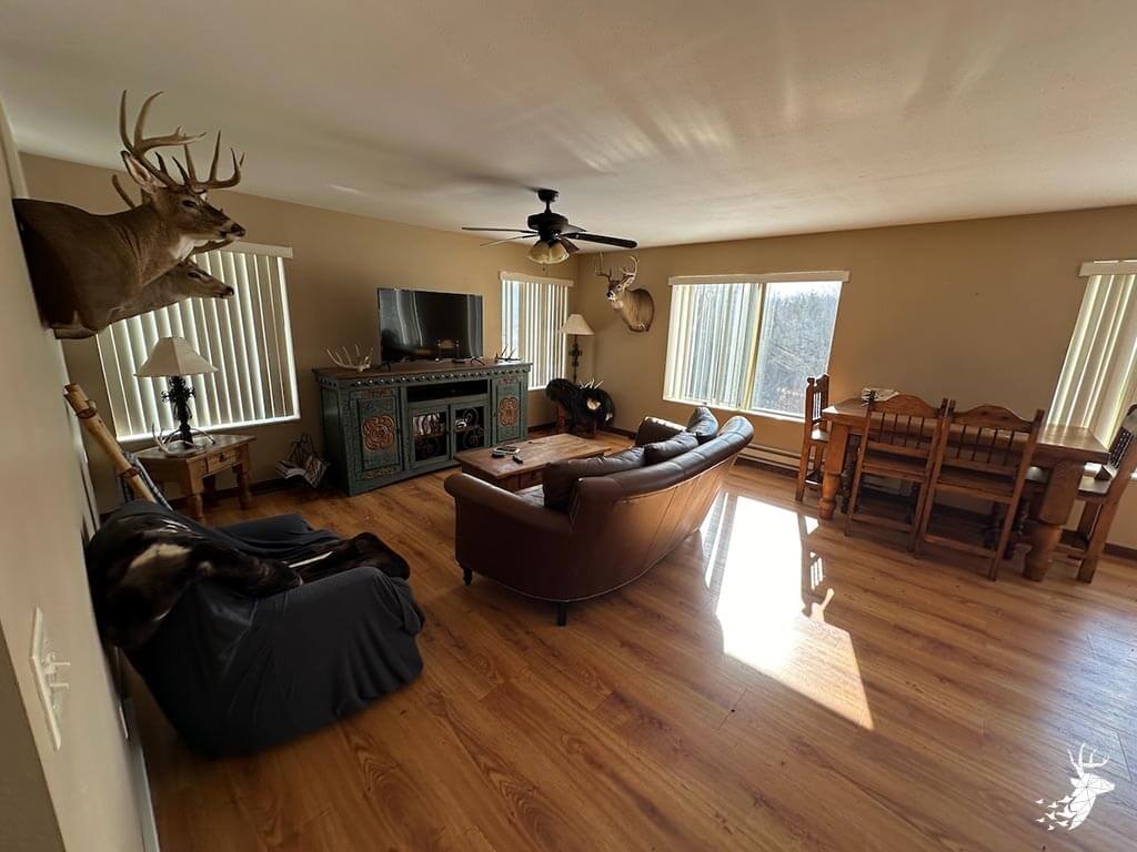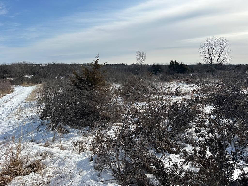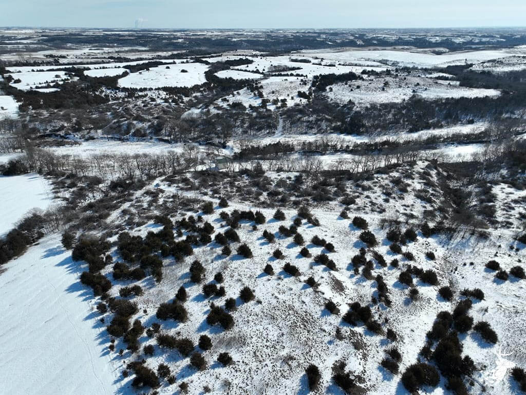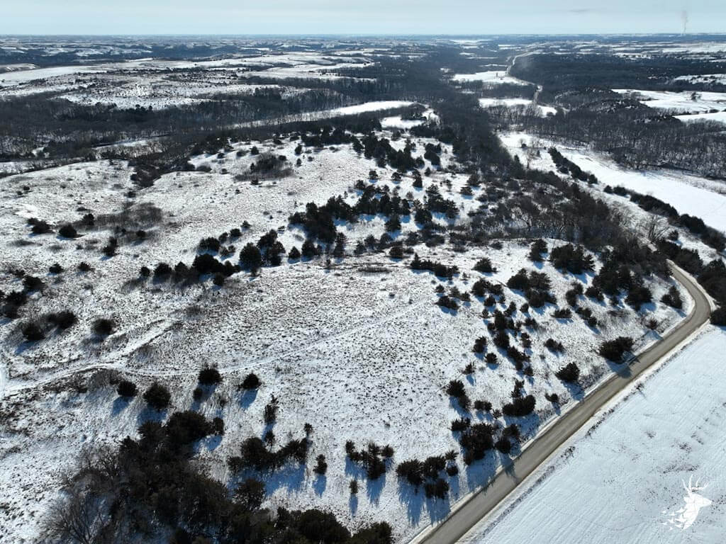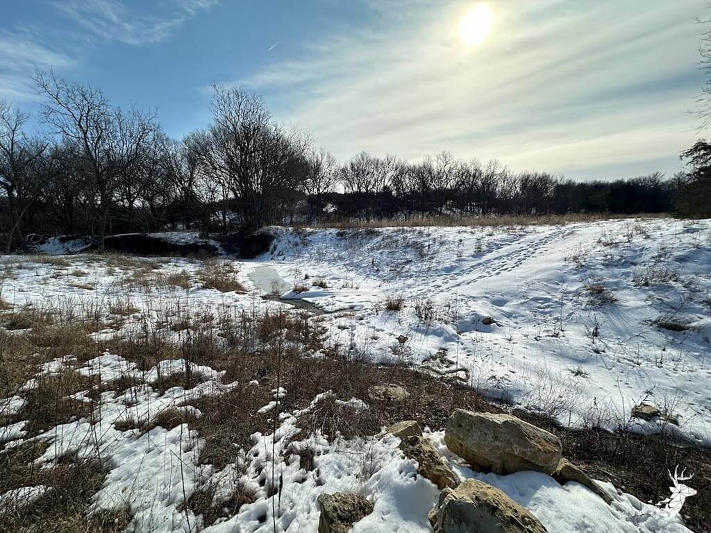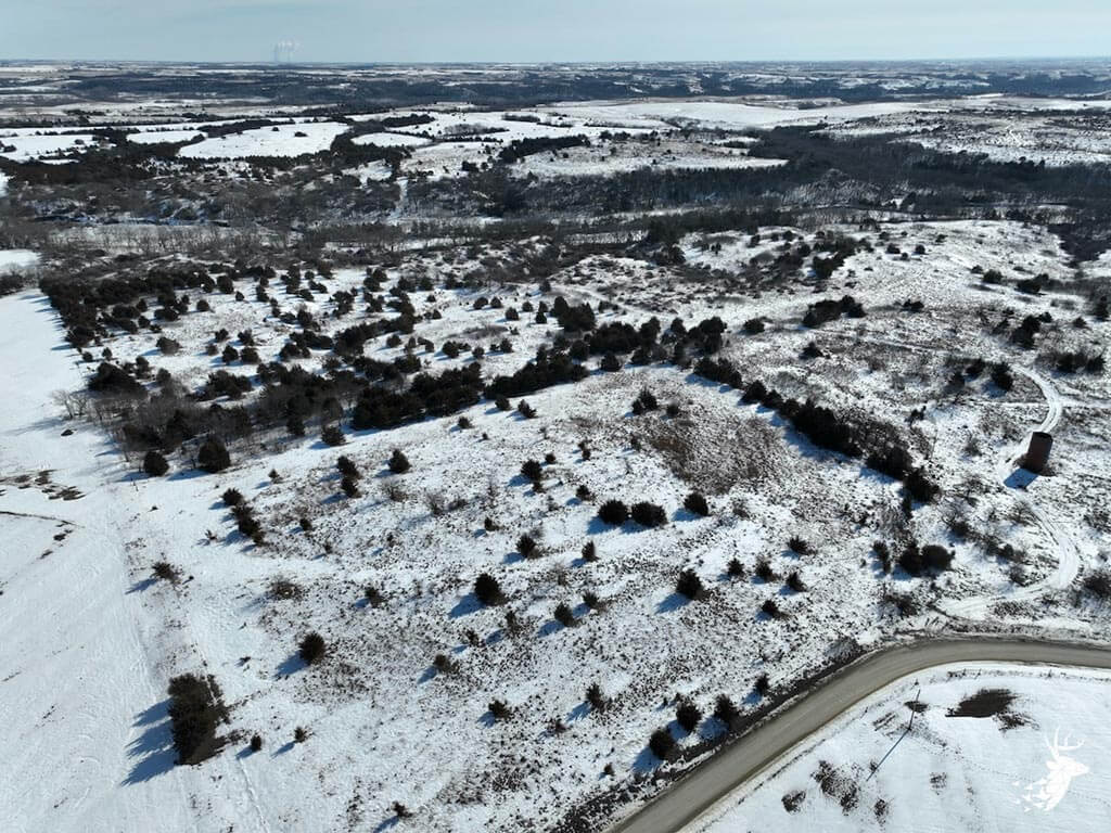 This 187 m/l acre ranch sits in the heart of big buck country. Kansas was put on the map for giant whitetails in the late 90s. Pottawatomie county was part of the awakening with a nontypical state archery record and several BC book deer to follow. The magic of the Flint Hills grew some giant whitetails with the help of large alfalfa fields, soybean and corn fields. The QDMA in the area to grow 200 inch whitetails has been embedded for several decades. Farms in the area do not come up for sale often. Located a couple miles from Olsburg, KS and a short commute to Manhattan also known as the “Little Apple”. This property meets the needs of the evolving whitetail hunter with several management plans in place to improve the hunting and overall deer herd. Whether you’re a bow or gun hunter this property lays out to have hunting success. Several areas along the flowing creek have been cleared to expand food plots or ag harvesting along with several TSI projects that have been already implemented. There is a natural spring and stocked pond which adds additional water sources for local wildlife and provides fishing entertainment with a variety of species including bass, crappie, bluegill and catfish. The variety of trail-cam pics provide plenty of intel and history of trophy bucks that have frequented the property. The furnished lodge offers plenty of room for the entire family or hunting partners. The two-story secluded home sits in the center of the property and has incredible views of the food plots and timbered creek lines. The house is connected to rural water. Two bedrooms and a full bath with an open kitchen/living room adds the perfect touch for the weekend getaways or dedicated long weeks of rut hunting. Additional features include washer, dryer and new HVAC. The attached garage allows for parking as well as extra storage for gear. The detached shop is perfect for UTV’s or skinning deer. Hunting retreats of this caliber don’t last long on the market. Call for a showing today!