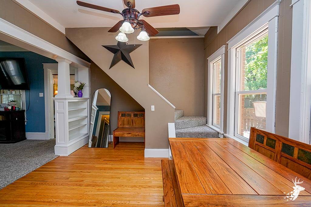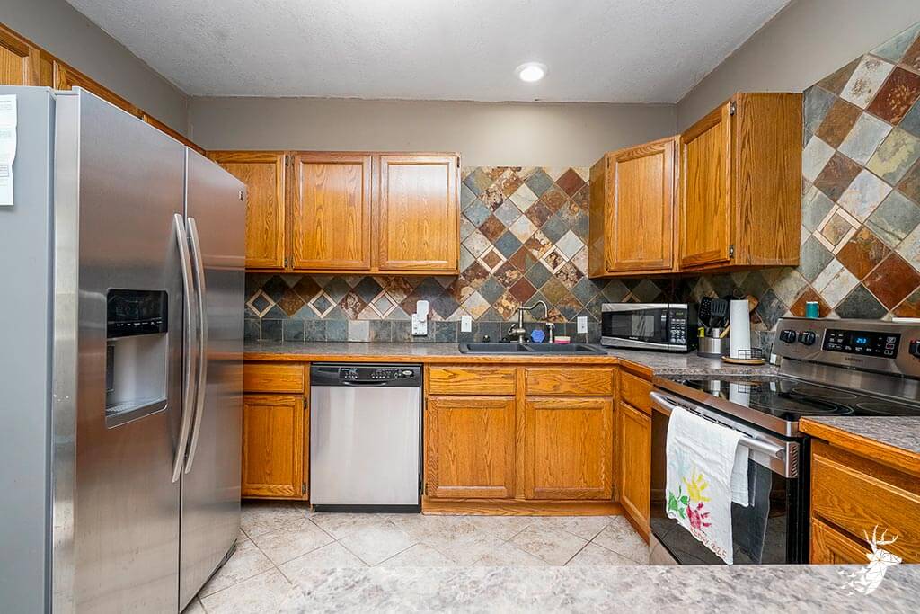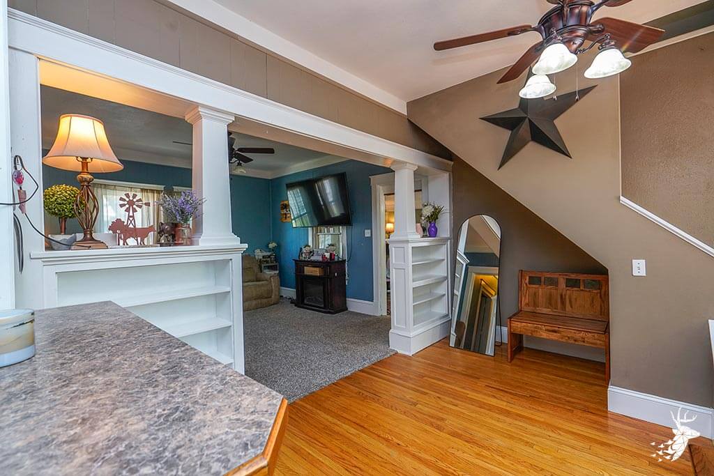 Outside, the property offers an oversized one-car garage, a large deck, and extra off-street parking. Its location is conveniently close to Holton’s walking trails, dog park, downtown shops and restaurants, Banner Creek Reservoir, and Prairie Lake.