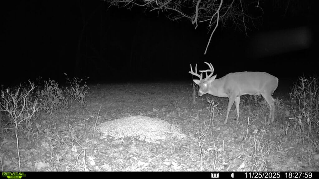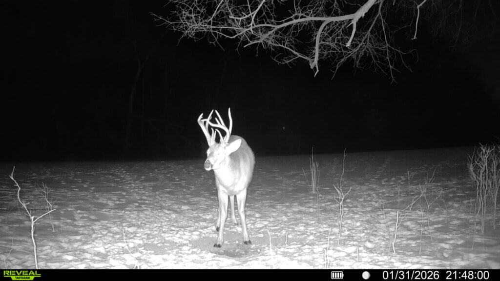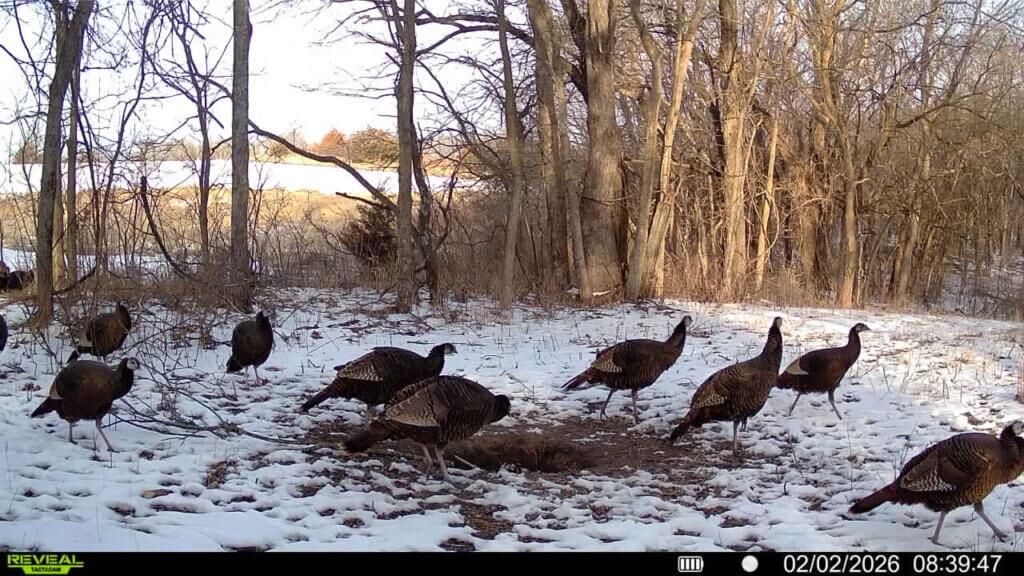 Two ponds and a creek bed provide reliable water, and several mature roost trees support a strong turkey population. An established trail system offers easy access across the property, and trail-camera photos showcase the quality of the deer and turkey that frequent the land.