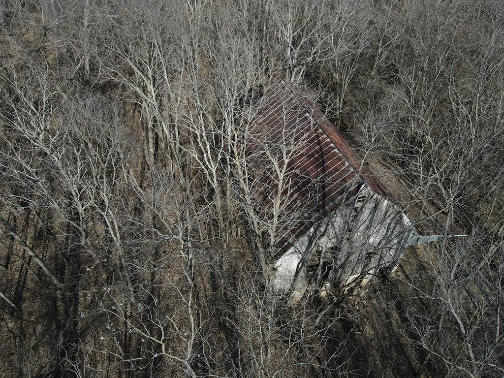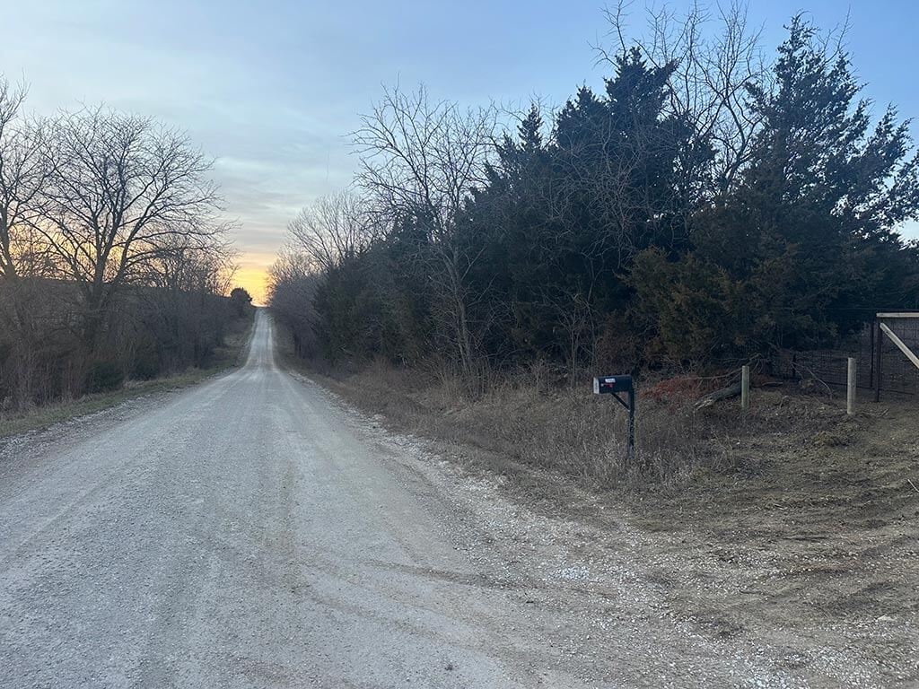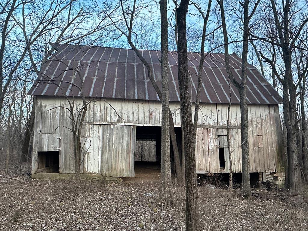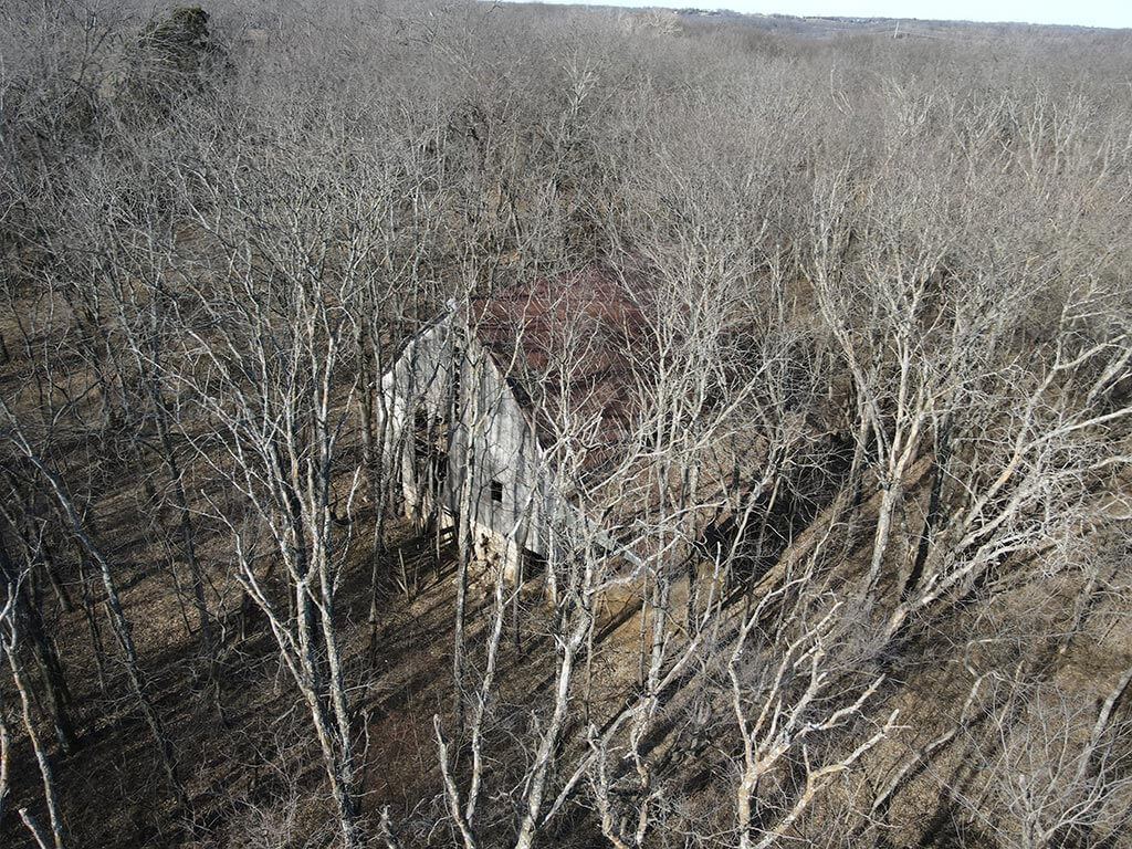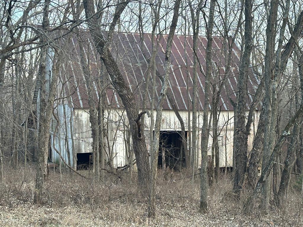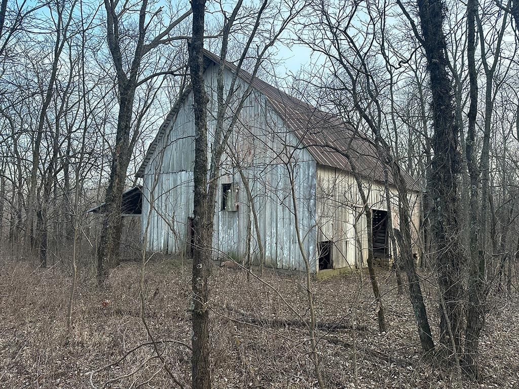An old barn and homestead area remain on site and present an opportunity for a future homesite, complete with an existing grass/dirt driveway. The property is accessed by gravel road, with pavement nearby to the northeast.