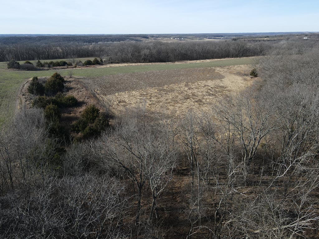 Black walnut is abundant and offers potential for future timber-harvest income. Wildlife food sources are well established, including a hidden 20 m/l–acre food plot currently planted in winter wheat, along with 12 m/l acres of row crop farmed by a neighboring tenant for additional income.