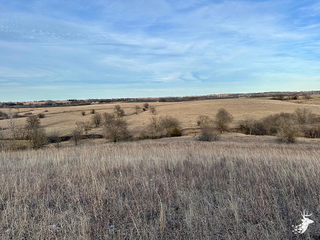 Totaling 120 m/l acres, this property will be attractive as a build site, cattle ranch and/or recreational land. Rolling native grasses make for incredible views and plenty of feed for livestock. Fully fenced with multiple gate entrances and cross-fencing allows for rotational grazing and subdividing possibilities. A one acre pond provides water for livestock and local wildlife. The trail-cam photos are impressive as several mature whitetails and wild turkey have frequented the property as documented the last two years. Trees, brush and draws along with neighboring cover in the area make for transitional crossings and excellent archery/gun hunting. Located a mile from pavement and short commute to north Topeka makes this property ideal to build a dream home, but still enjoy the benefits of country living. A half mile of road frontage on 2 sides makes for great access and easy splitting for future selling options. Give us a call today for a showing. Additional acreage available.