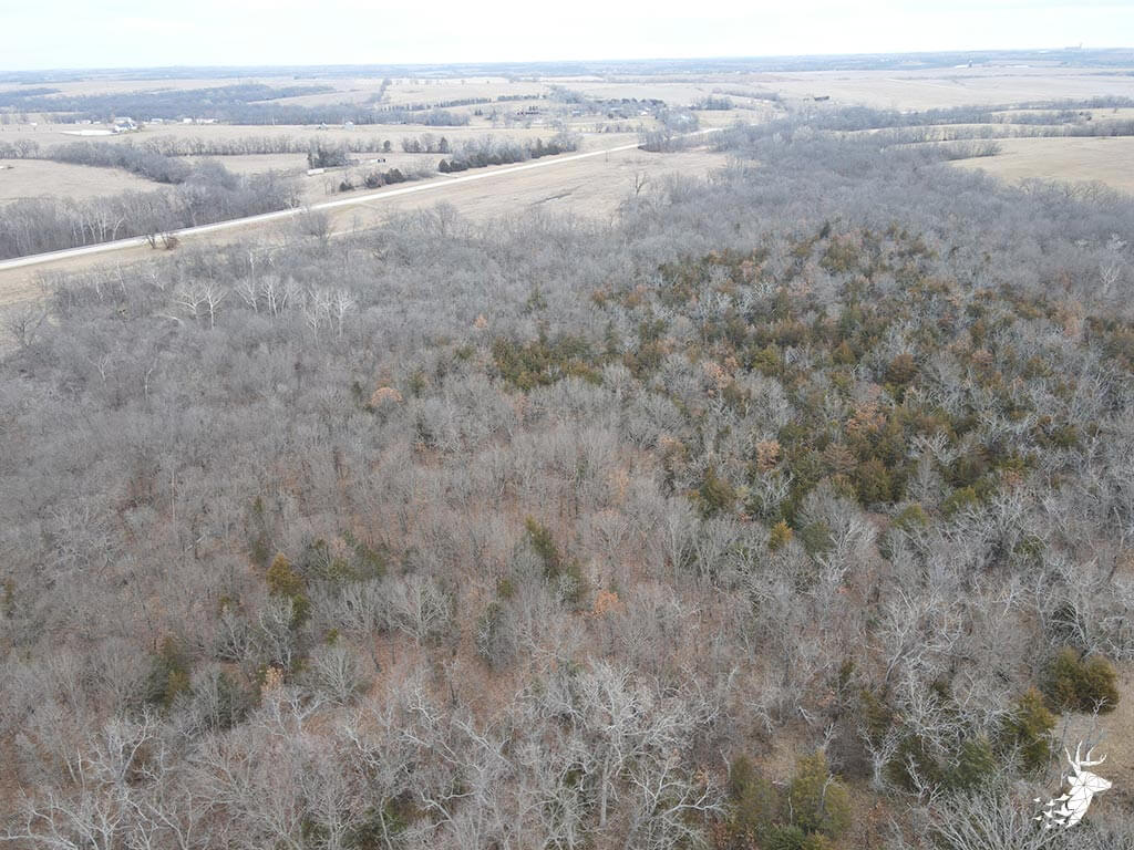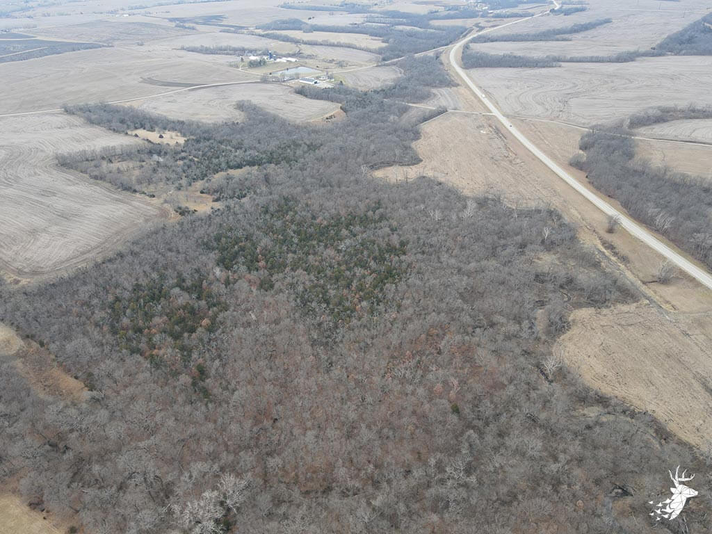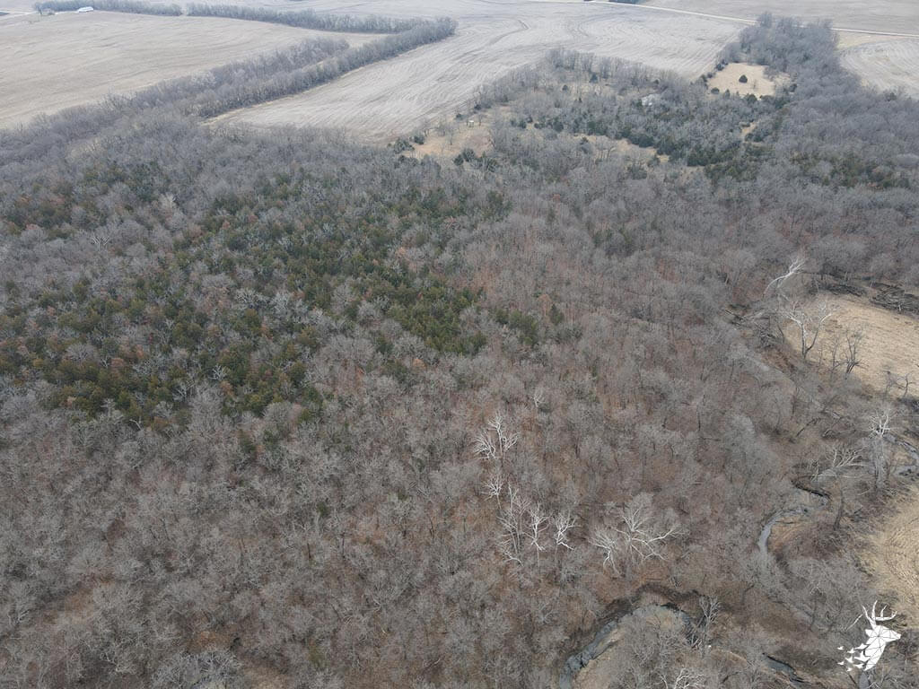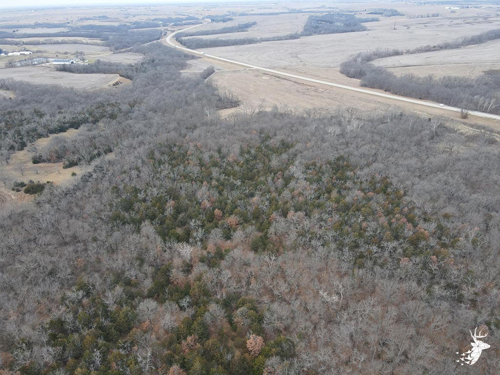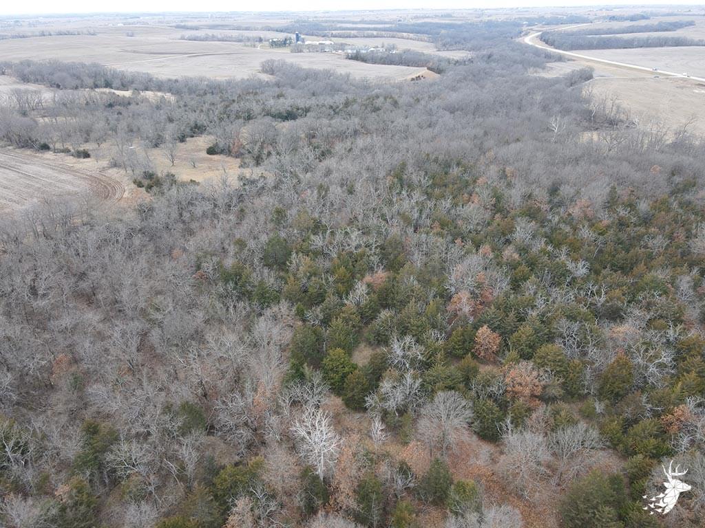 This 50.59 m/l acre recreational tract has many opportunities for the whitetail hunter as well as outdoor enthusiasts. This property hunts BIG for archery and gun hunters. The thick cover is made up of a mixture of rolling mature hardwoods, cedars, and hedge trees which allow the whitetail deer and wild turkey to stay hidden and have plenty of seclusion away from the roads and highway. The elevation changes of the timbered draws allow the property to hunt like a bigger tract of land. The trail-cam pics speak for themselves of the quality of bucks that frequent the land. Black walnut is abundant for additional timber harvest income. There is plenty of food for the wildlife from the neighboring agriculture fields and flowing a creek that defines NW line on the property. There are several mature roost trees for the wild turkeys as well. Access to the property is a graveled easement on the SW side of the property off of Kiowa RD. Small acreage hunting of this quality does not hit the market often. Located within minutes of Atchison, Kansas and just over an hour commute from Kansas City.
