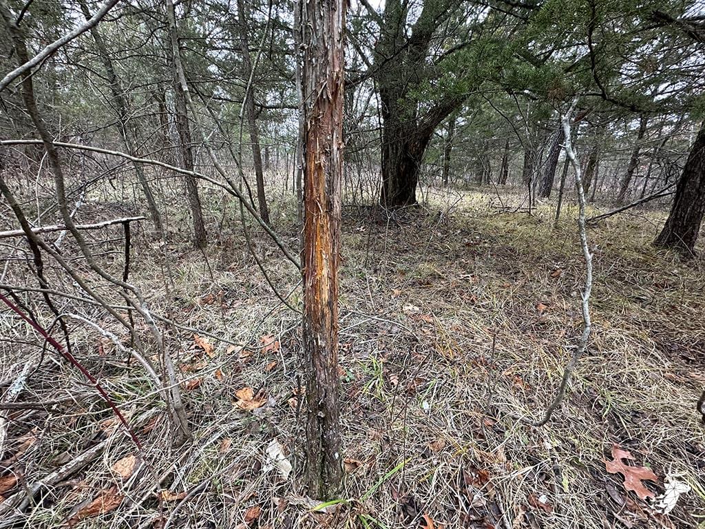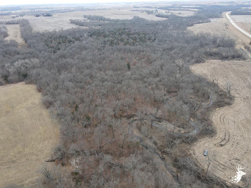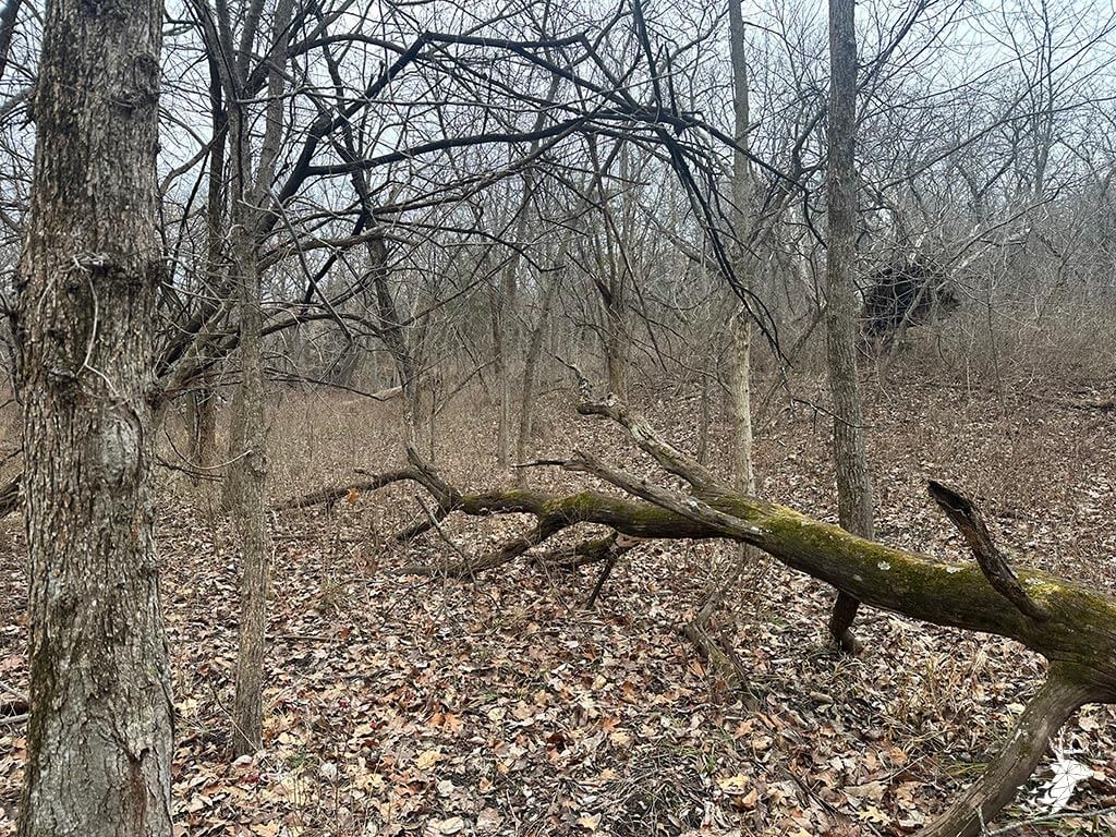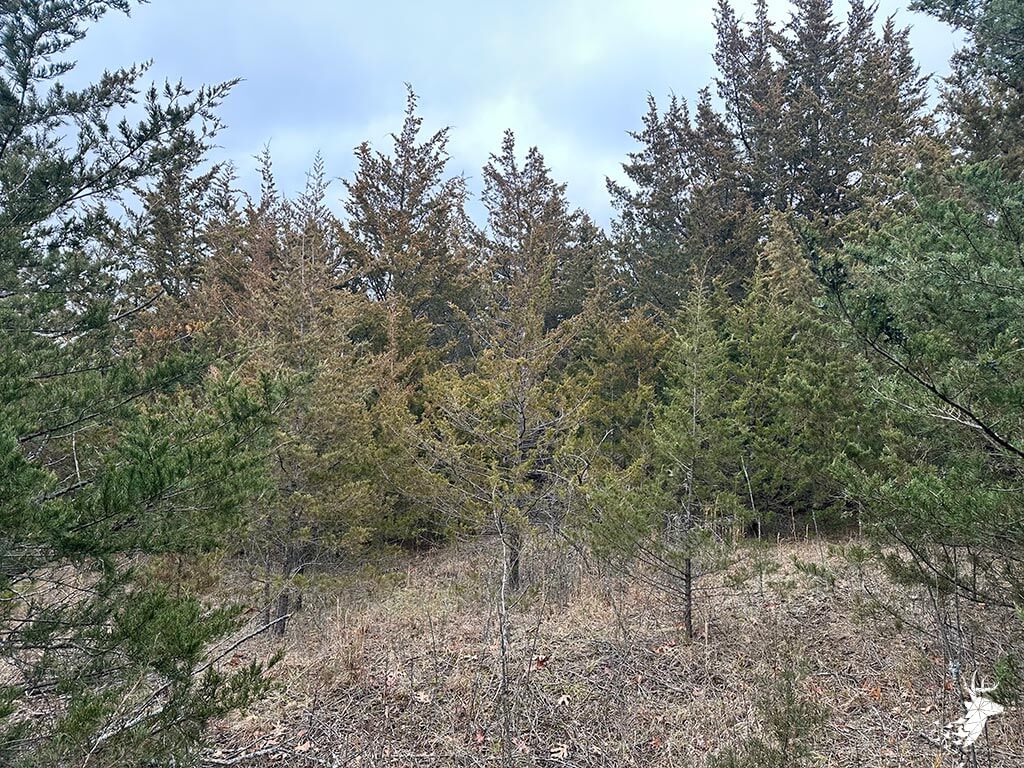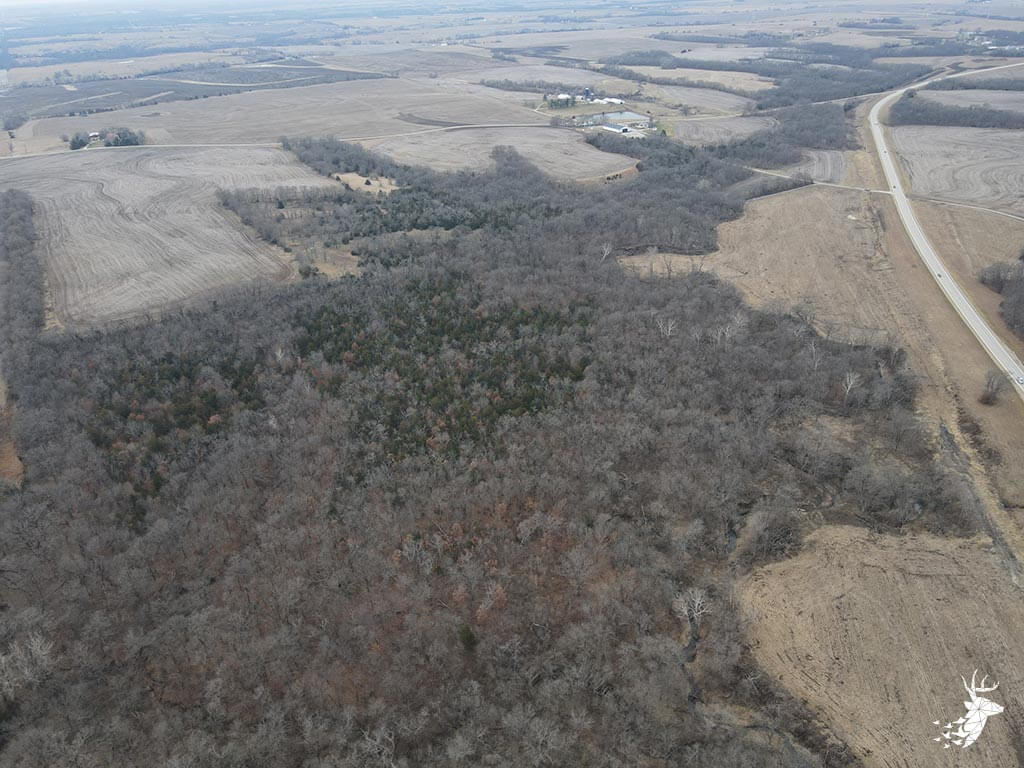 This 50.59 m/l acre recreational tract has many opportunities for the whitetail hunter as well as outdoor enthusiasts. This property hunts BIG for archery and gun hunters. The thick cover is made up of a mixture of rolling mature hardwoods, cedars, and hedge trees which allow the whitetail deer and wild turkey to stay hidden and have plenty of seclusion away from the roads and highway. The elevation changes of the timbered draws allow the property to hunt like a bigger tract of land. The trail-cam pics speak for themselves of the quality of bucks that frequent the land. Black walnut is abundant for additional timber harvest income. There is plenty of food for the wildlife from the neighboring agriculture fields and flowing a creek that defines NW line on the property. There are several mature roost trees for the wild turkeys as well. Access to the property is a graveled easement on the SW side of the property off of Kiowa RD. Small acreage hunting of this quality does not hit the market often. Located within minutes of Atchison, Kansas and just over an hour commute from Kansas City.