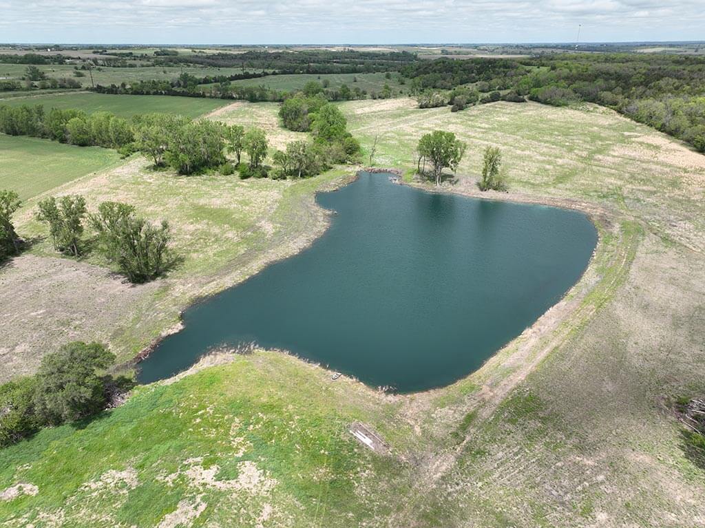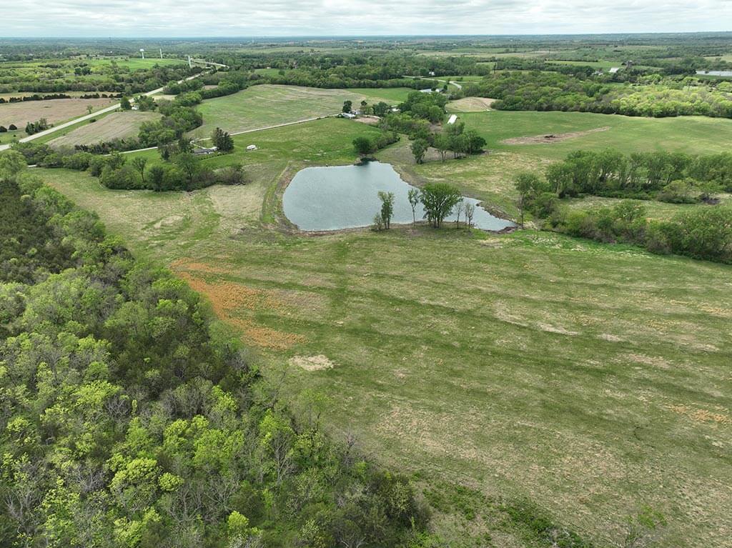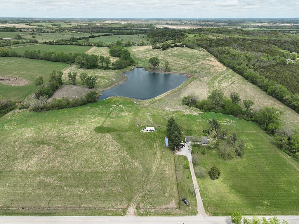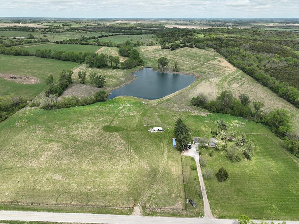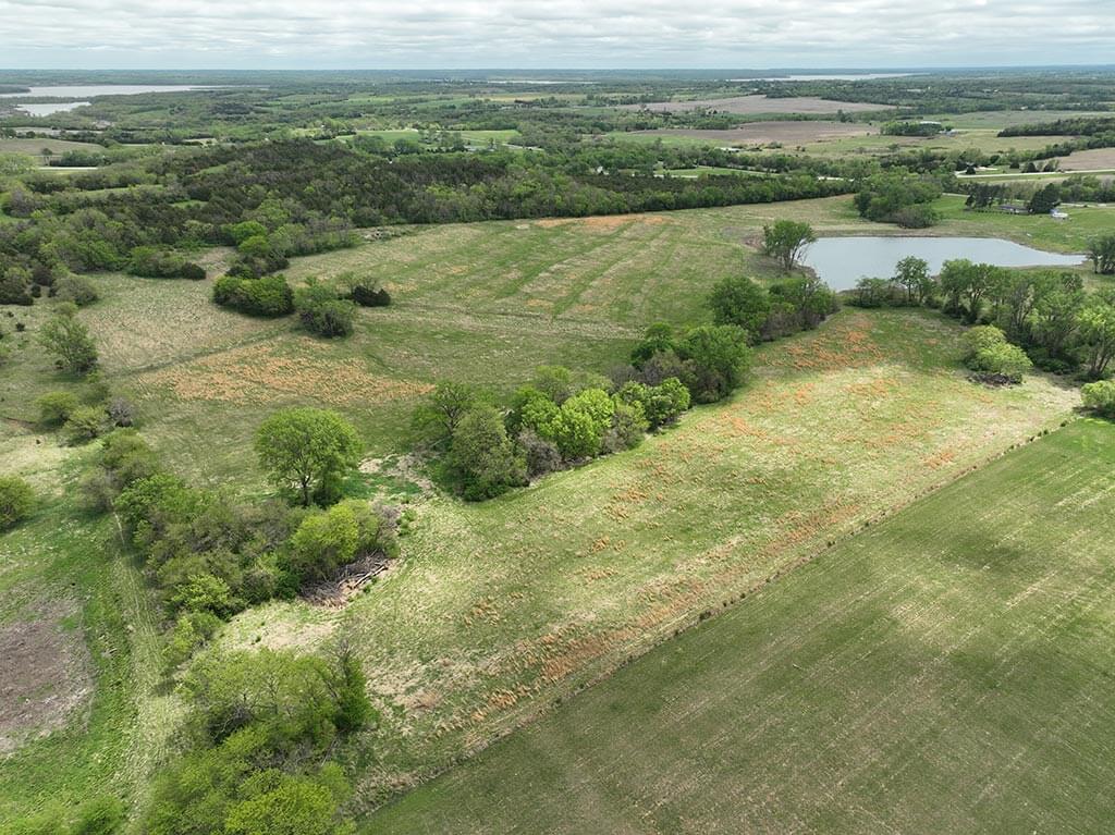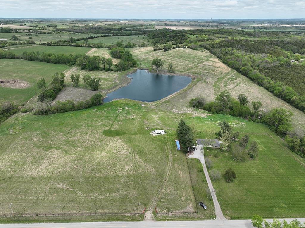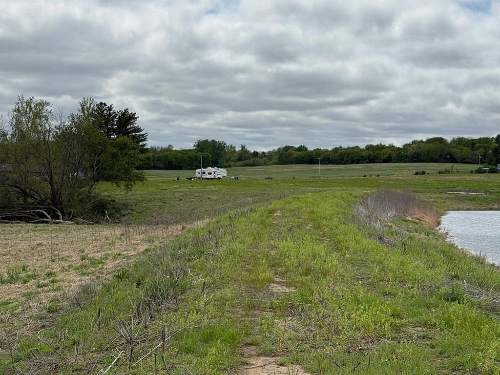 Located just outside of Meriden, this versatile 73 m/l acre tract offers an excellent blend of recreation, income potential, and rural convenience. With approximately 54 acres of well-maintained, fertilized brome grass currently under a share-crop hay arrangement, the property provides immediate return while still leaving plenty of room to enjoy. The land is complemented by scenic timbered draws that create ideal habitat for wildlife, making this a strong candidate for hunting or recreational use. A standout feature is the impressive 5 m/l surface water acre pond with room to fill. It’s been freshly stocked and enhanced with a brand-new dam and concrete riser system—perfect for fishing, relaxing, or simply enjoying the view. Conveniently located minutes from Perry Lake, you’ll have quick access to boating, fishing, and the marina, adding even more recreational appeal. The property is fully fenced with a combination of pipe and barbed wire fencing, making it suitable for livestock as well. Utilities are already in place with a rural water meter and electrical access, along with an existing RV hookup for immediate use. The seller is also willing to convey the RV and an 8’x40’ storage container, offering added value and convenience for a weekend getaway or basecamp. Whether you’re looking for a productive grass farm, a recreational retreat, or a build-ready rural escape, this Jefferson County property checks all the boxes.