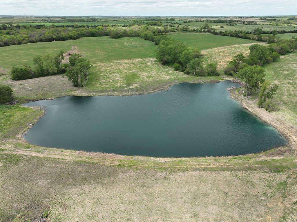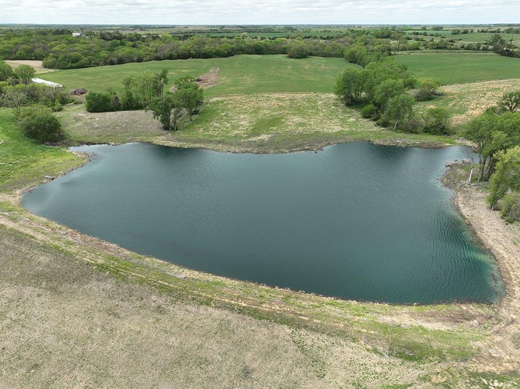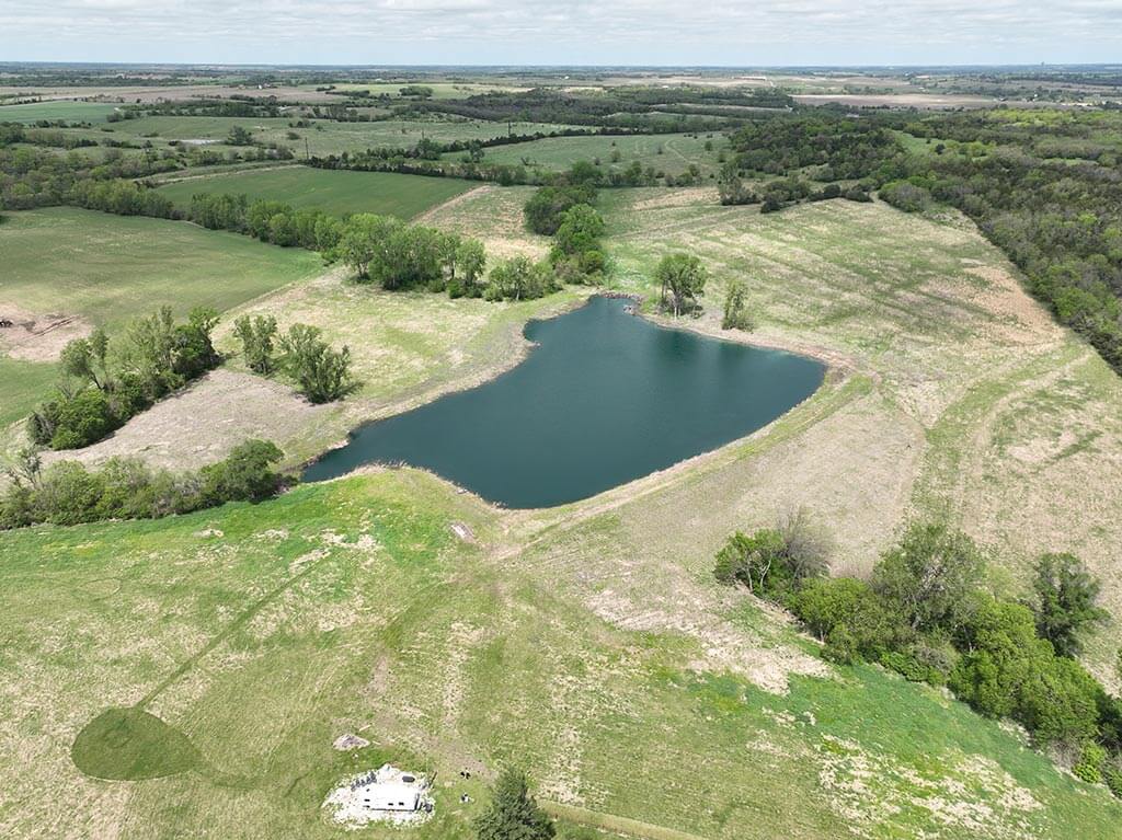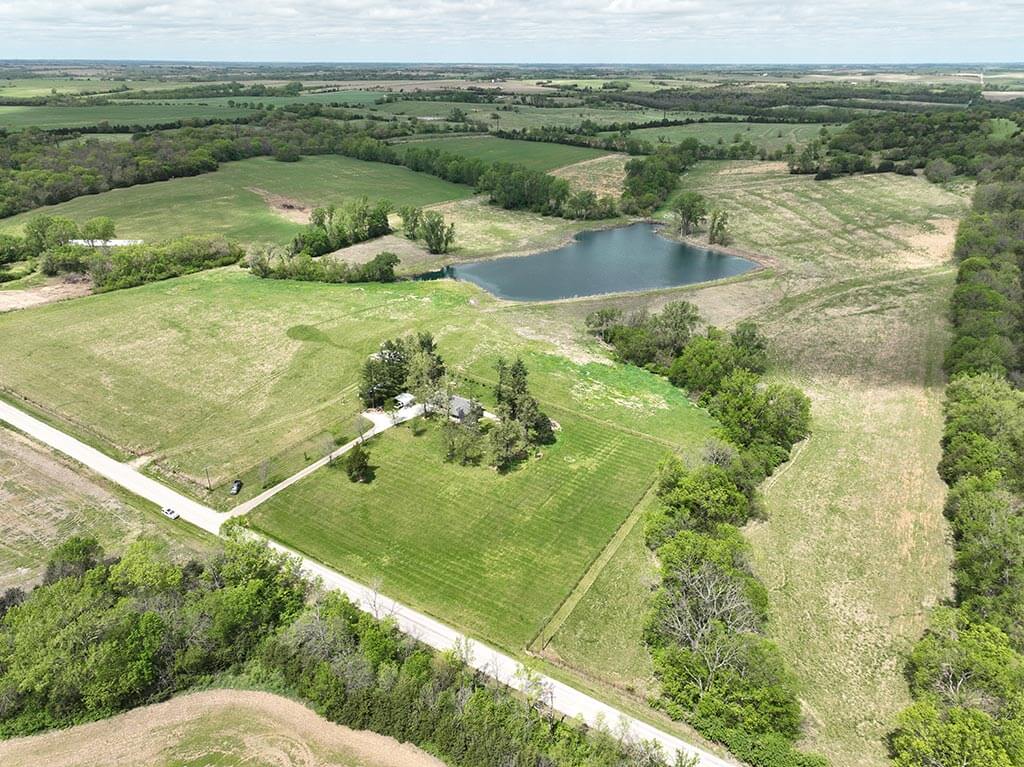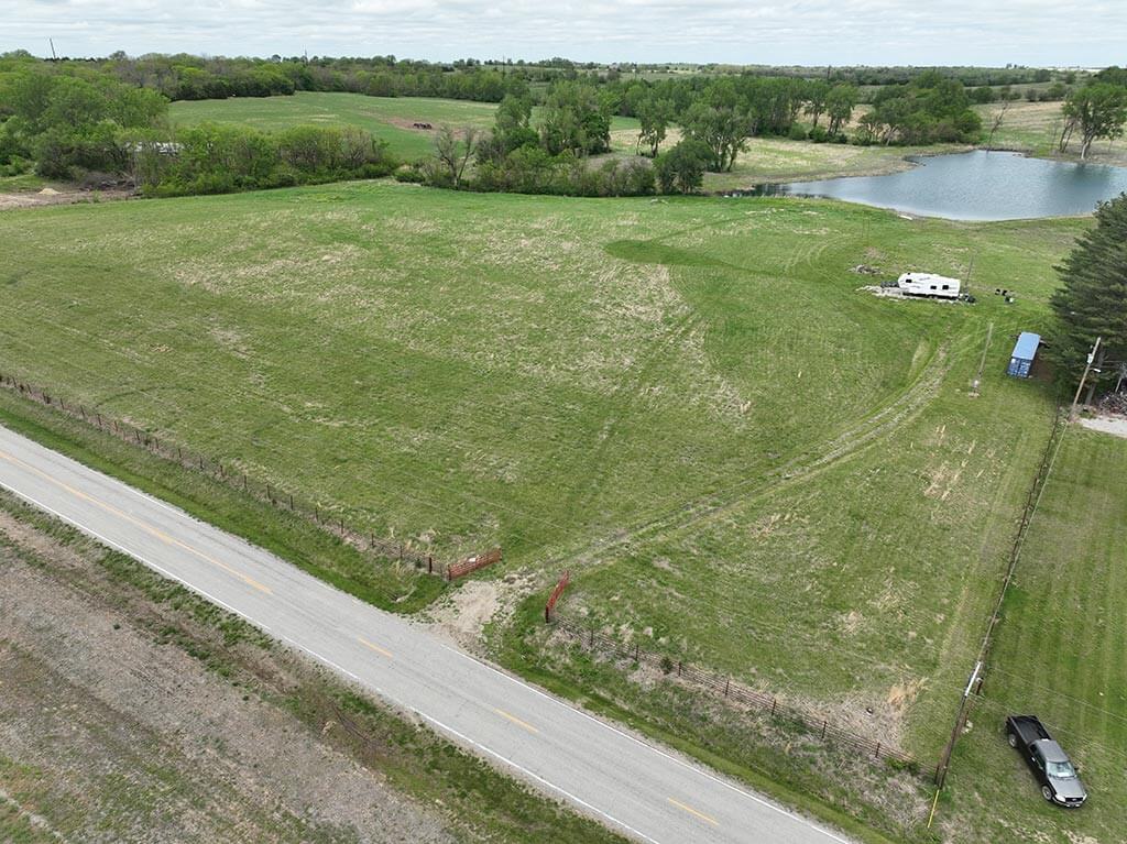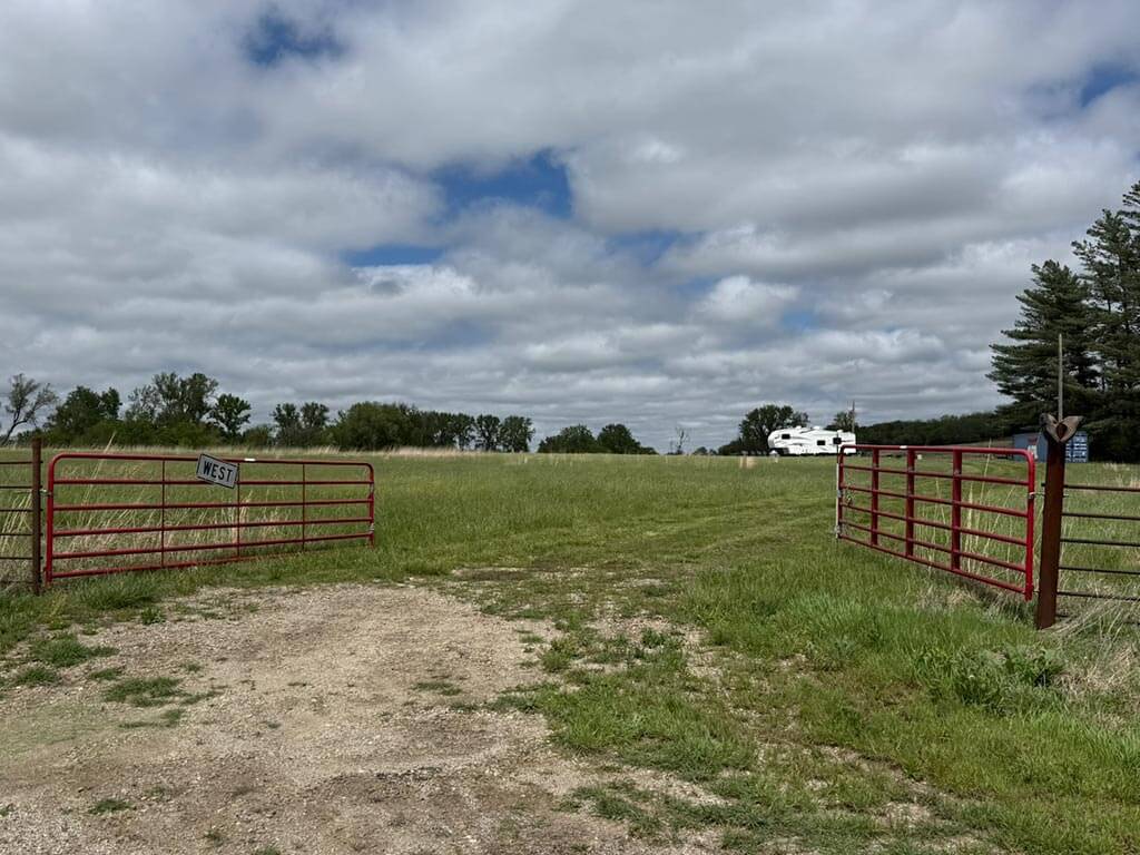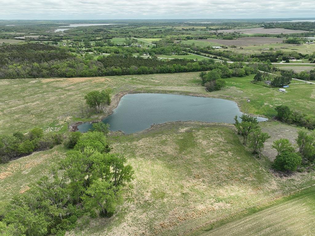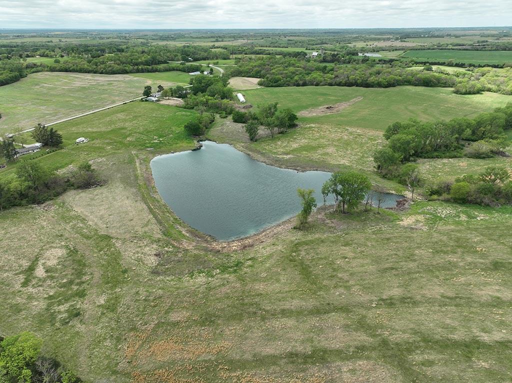 Located just outside of Meriden, this versatile 73 m/l acre tract offers an excellent blend of recreation, income potential, and rural convenience. With approximately 54 acres of well-maintained, fertilized brome grass currently under a share-crop hay arrangement, the property provides immediate return while still leaving plenty of room to enjoy. The land is complemented by scenic timbered draws that create ideal habitat for wildlife, making this a strong candidate for hunting or recreational use. A standout feature is the impressive 5 m/l surface water acre pond with room to fill. It’s been freshly stocked and enhanced with a brand-new dam and concrete riser system—perfect for fishing, relaxing, or simply enjoying the view. Conveniently located minutes from Perry Lake, you’ll have quick access to boating, fishing, and the marina, adding even more recreational appeal. The property is fully fenced with a combination of pipe and barbed wire fencing, making it suitable for livestock as well. Utilities are already in place with a rural water meter and electrical access, along with an existing RV hookup for immediate use. The seller is also willing to convey the RV and an 8’x40’ storage container, offering added value and convenience for a weekend getaway or basecamp. Whether you’re looking for a productive grass farm, a recreational retreat, or a build-ready rural escape, this Jefferson County property checks all the boxes.