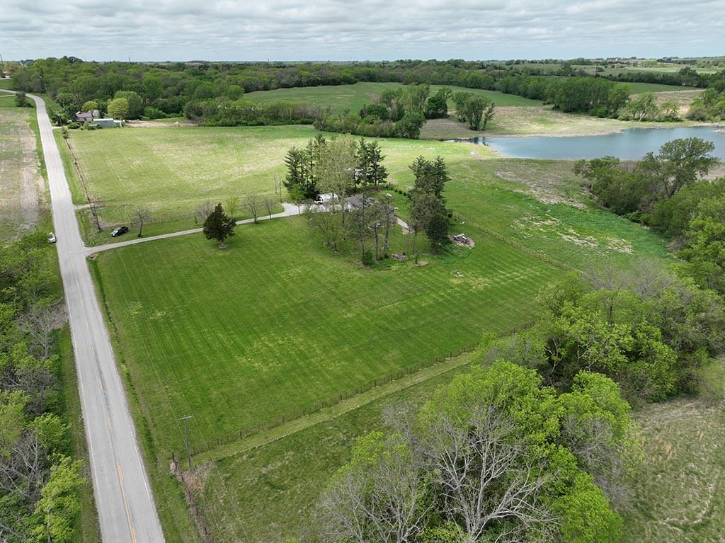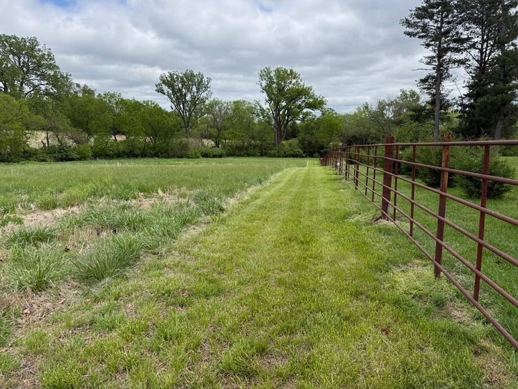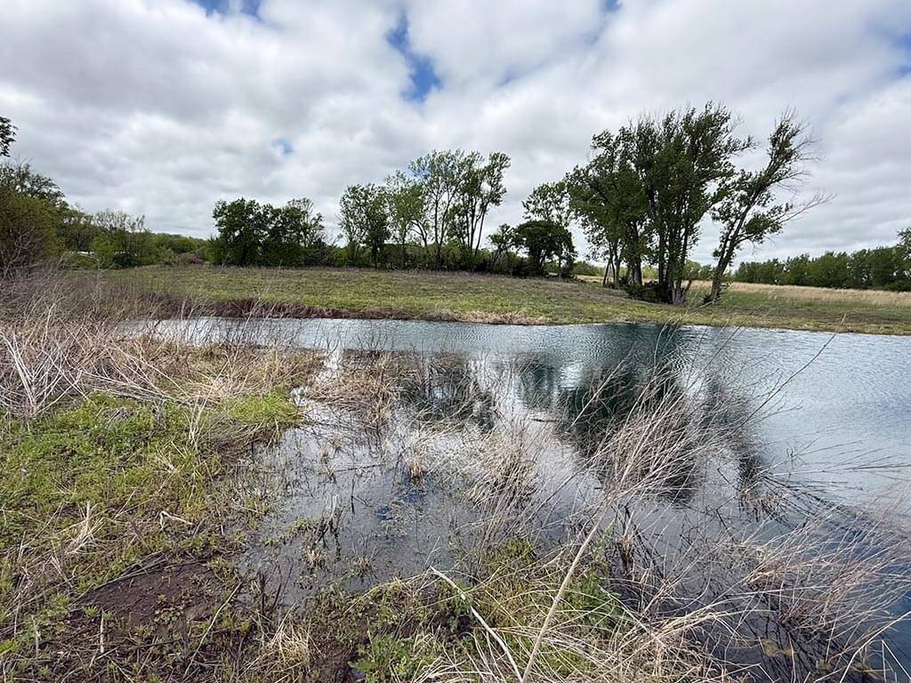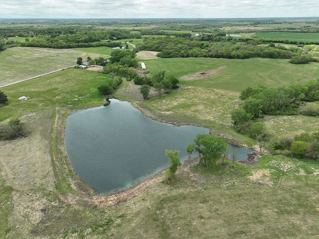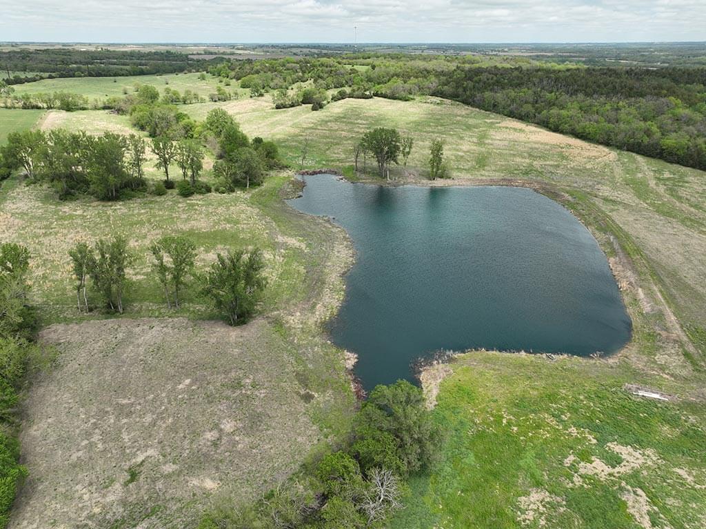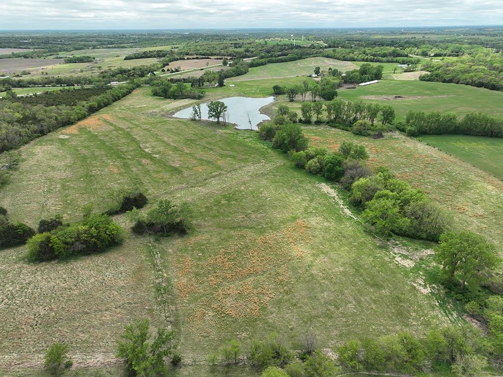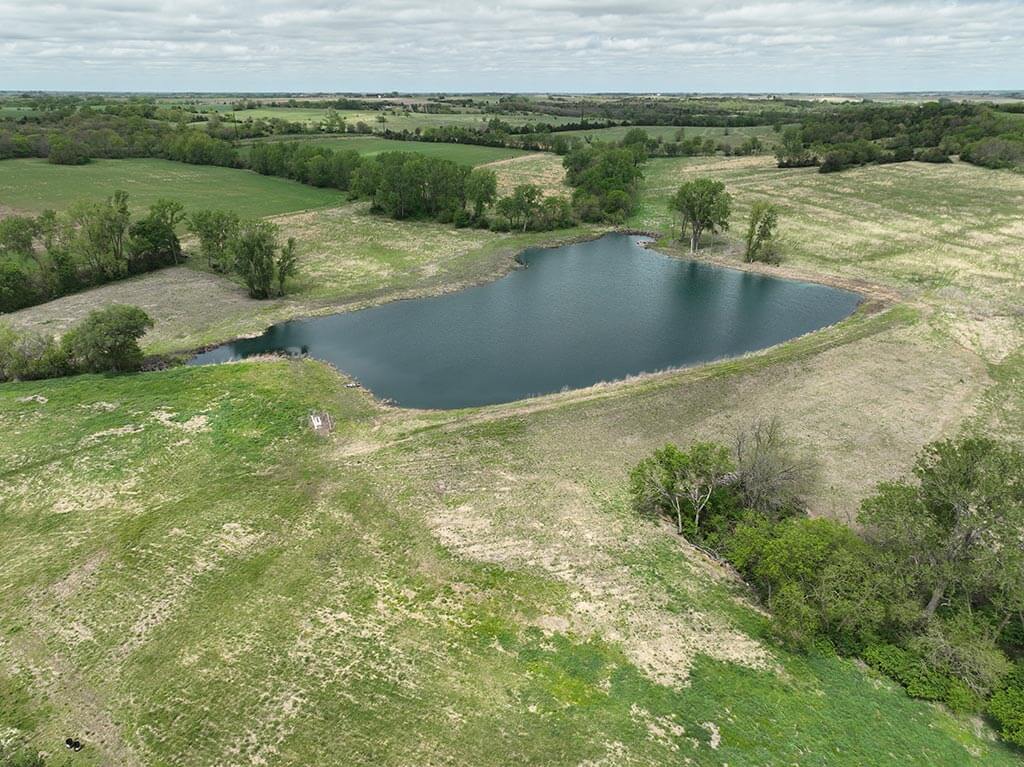 Located just outside of Meriden, this versatile 73 m/l acre tract offers an excellent blend of recreation, income potential, and rural convenience. With approximately 54 acres of well-maintained, fertilized brome grass currently under a share-crop hay arrangement, the property provides immediate return while still leaving plenty of room to enjoy. The land is complemented by scenic timbered draws that create ideal habitat for wildlife, making this a strong candidate for hunting or recreational use. A standout feature is the impressive 5 m/l surface water acre pond with room to fill. It’s been freshly stocked and enhanced with a brand-new dam and concrete riser system—perfect for fishing, relaxing, or simply enjoying the view. Conveniently located minutes from Perry Lake, you’ll have quick access to boating, fishing, and the marina, adding even more recreational appeal. The property is fully fenced with a combination of pipe and barbed wire fencing, making it suitable for livestock as well. Utilities are already in place with a rural water meter and electrical access, along with an existing RV hookup for immediate use. The seller is also willing to convey the RV and an 8’x40’ storage container, offering added value and convenience for a weekend getaway or basecamp. Whether you’re looking for a productive grass farm, a recreational retreat, or a build-ready rural escape, this Jefferson County property checks all the boxes.
