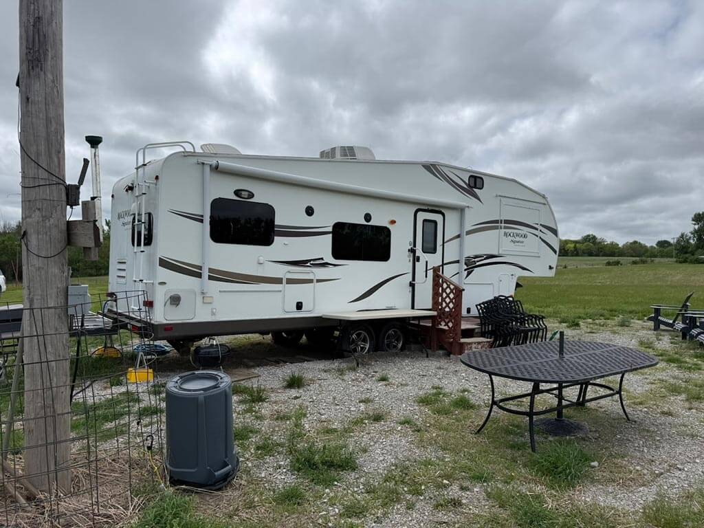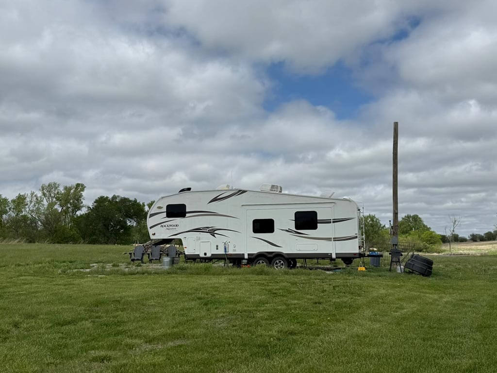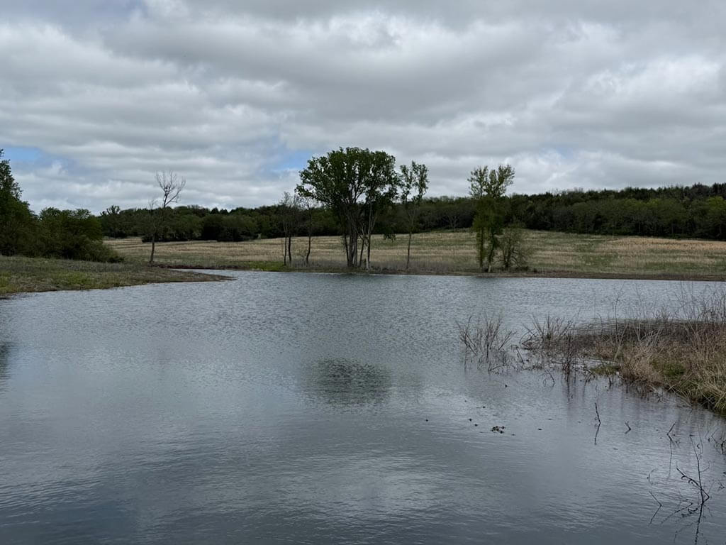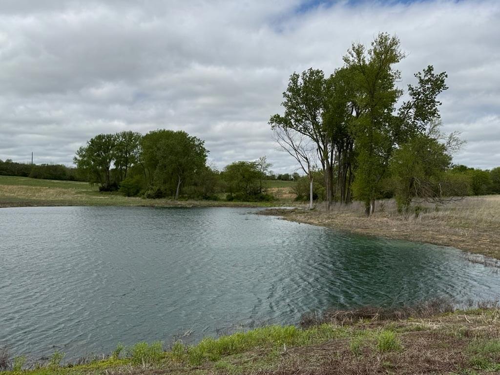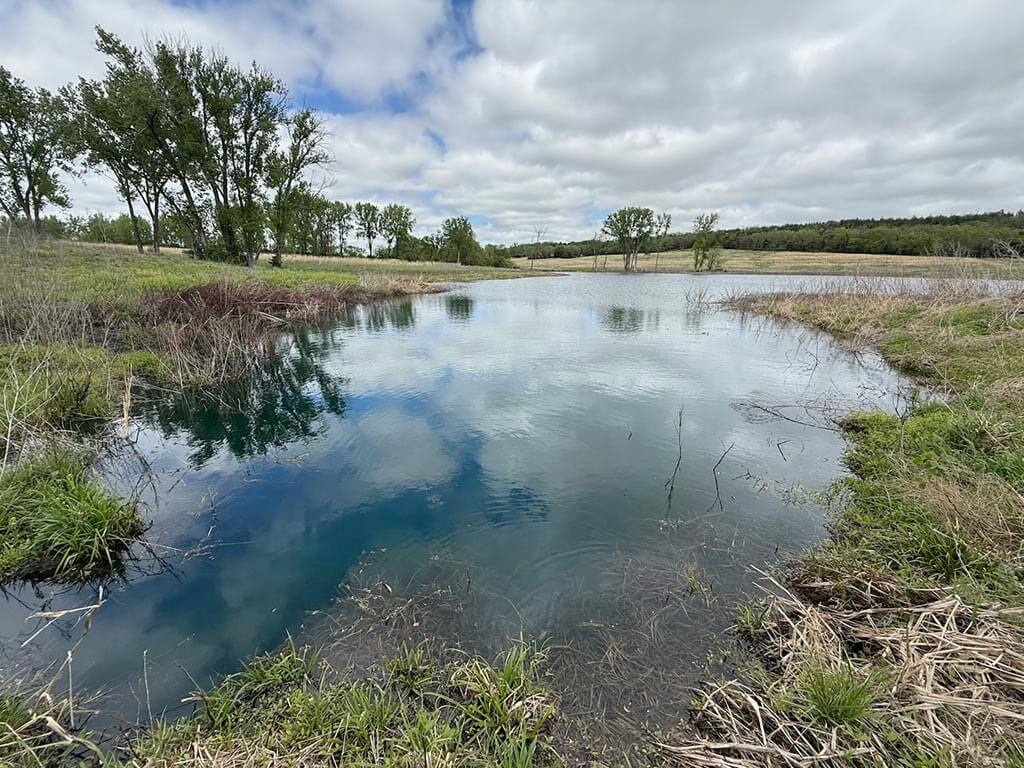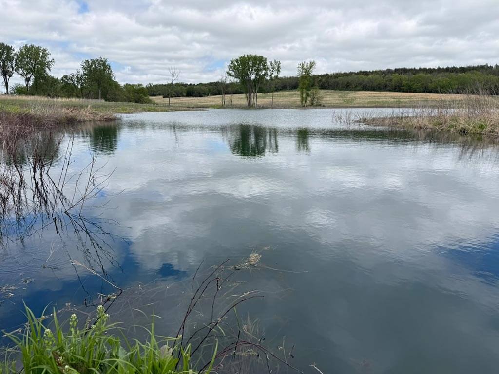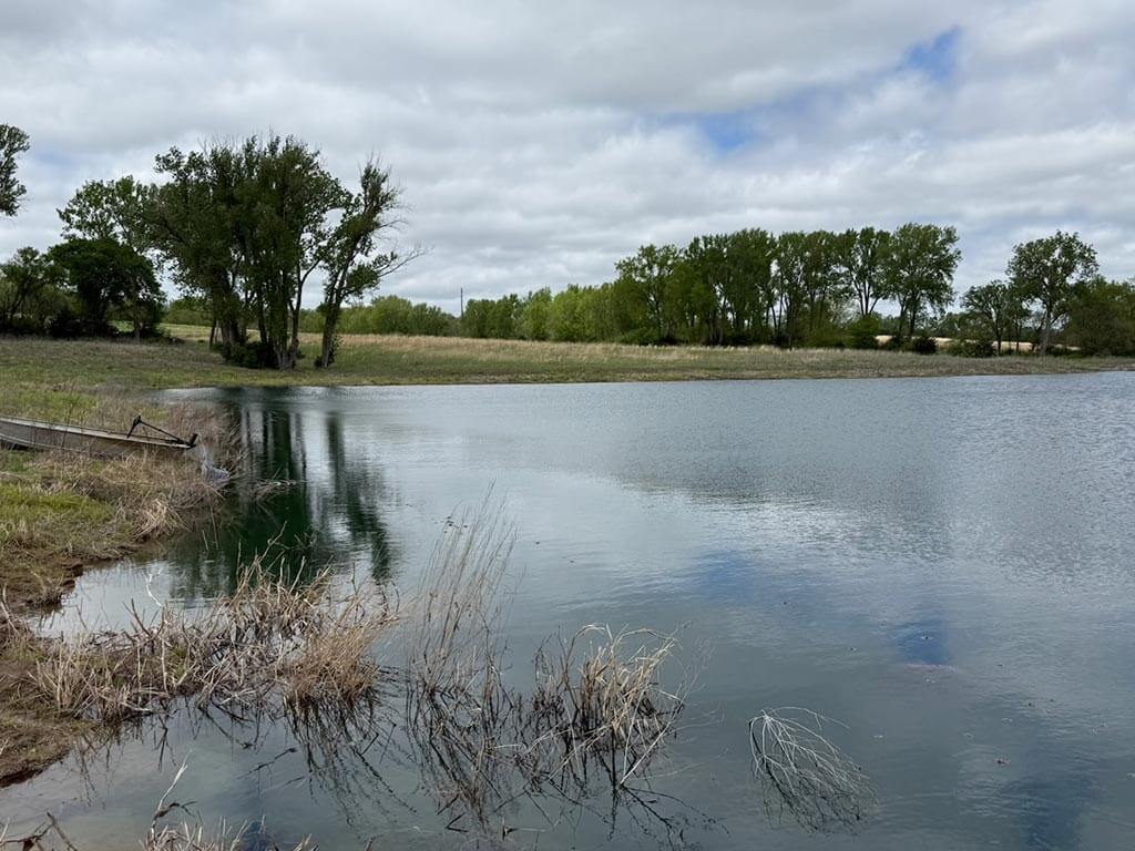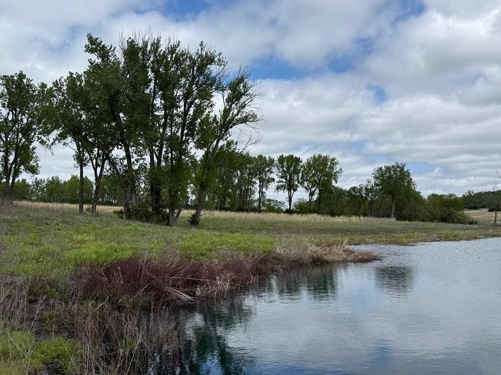 Located just outside of Meriden, this versatile 73 m/l acre tract offers an excellent blend of recreation, income potential, and rural convenience. With approximately 54 acres of well-maintained, fertilized brome grass currently under a share-crop hay arrangement, the property provides immediate return while still leaving plenty of room to enjoy. The land is complemented by scenic timbered draws that create ideal habitat for wildlife, making this a strong candidate for hunting or recreational use. A standout feature is the impressive 5 m/l surface water acre pond with room to fill. It’s been freshly stocked and enhanced with a brand-new dam and concrete riser system—perfect for fishing, relaxing, or simply enjoying the view. Conveniently located minutes from Perry Lake, you’ll have quick access to boating, fishing, and the marina, adding even more recreational appeal. The property is fully fenced with a combination of pipe and barbed wire fencing, making it suitable for livestock as well. Utilities are already in place with a rural water meter and electrical access, along with an existing RV hookup for immediate use. The seller is also willing to convey the RV and an 8’x40’ storage container, offering added value and convenience for a weekend getaway or basecamp. Whether you’re looking for a productive grass farm, a recreational retreat, or a build-ready rural escape, this Jefferson County property checks all the boxes.