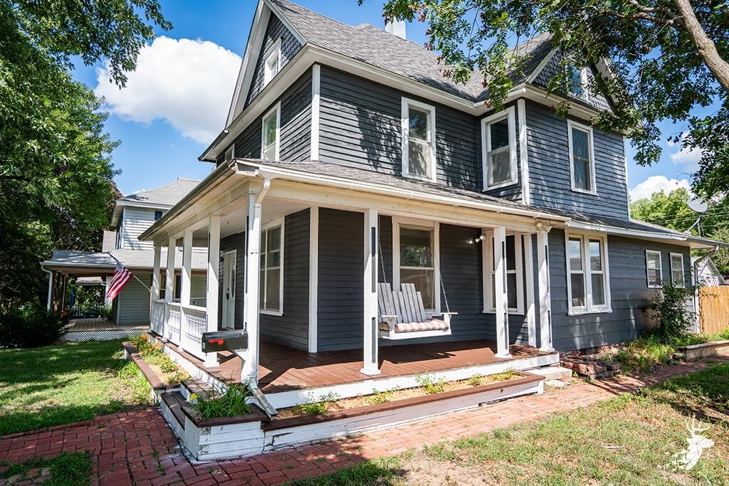 Very spacious home with plenty of room for your family. 4 bedrooms and 2 full baths. Nice location with easy close access to downtown square shopping, food and amenities! New exterior and interior paint 2022, flooring, High efficiency heat and air upstairs and on main floor. Lots of big-ticket items done and just needs YOUR touch. Great family home! Wrap around covered porch and fenced in backyard with established apple tree and shop to tinker and your DIY projects next to hard surfaced alley. Come take a look you will be pleasantly surprised of the amount of space.