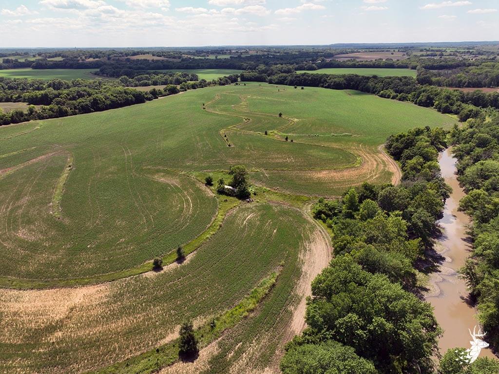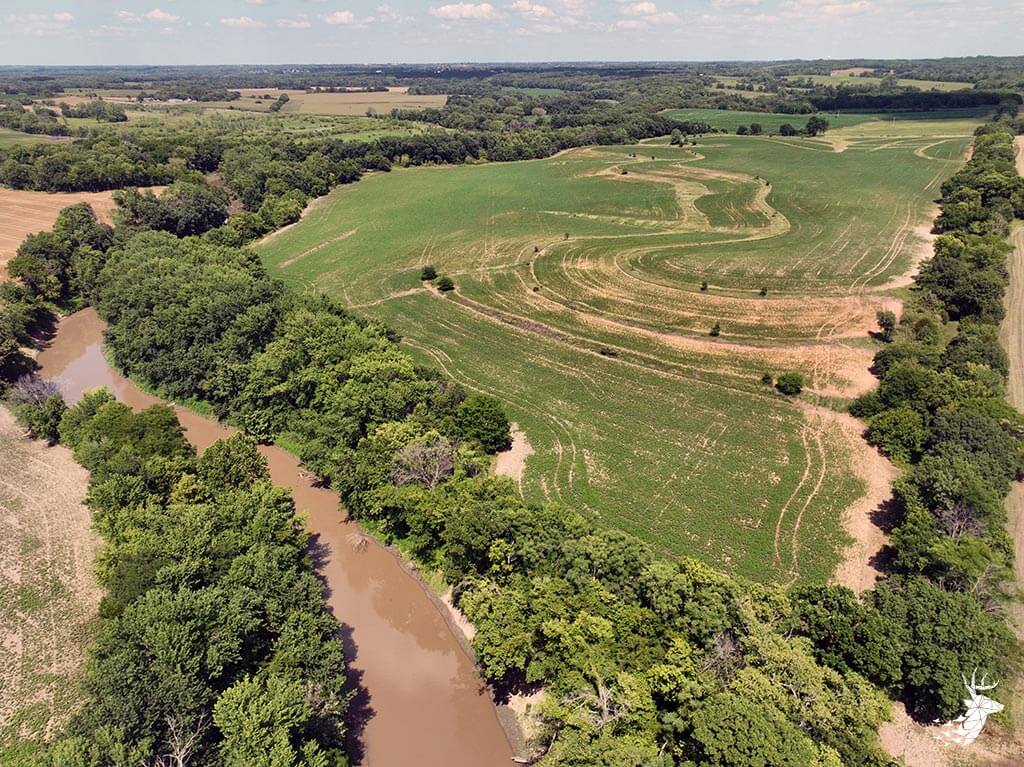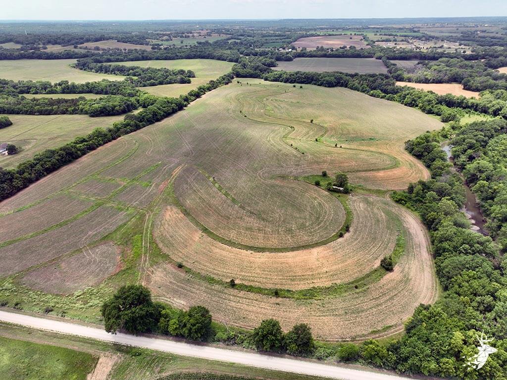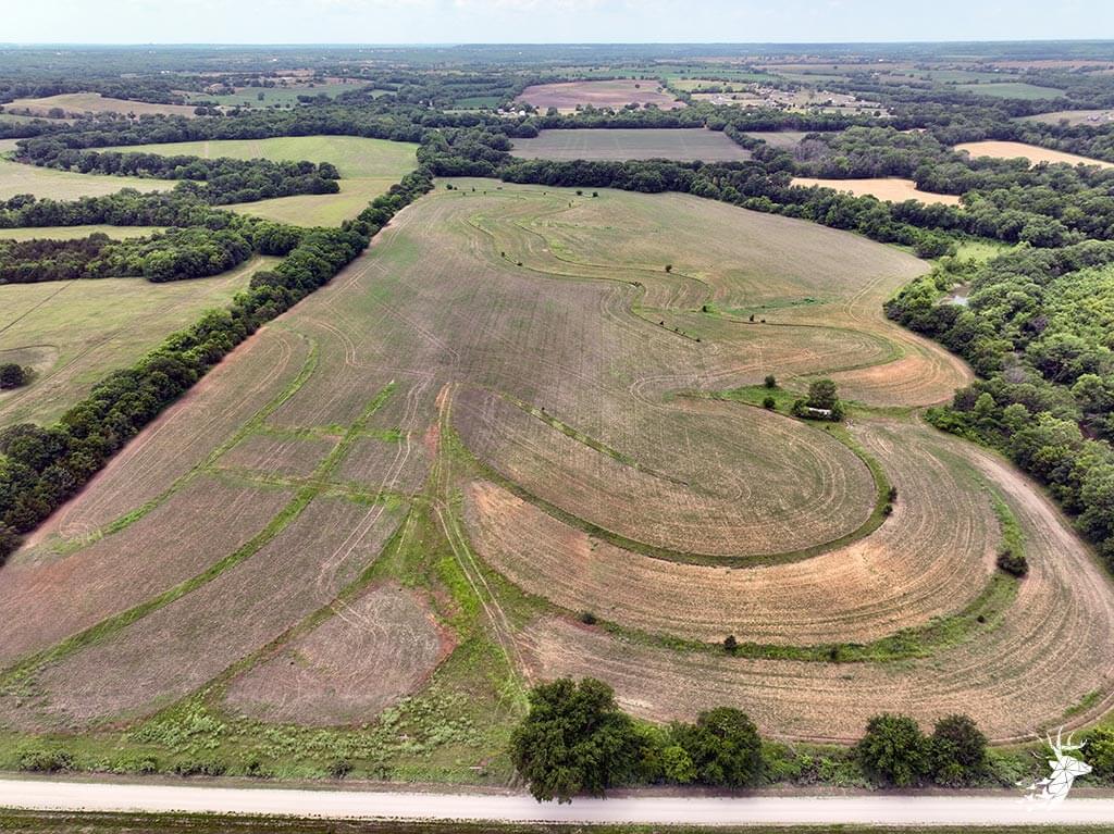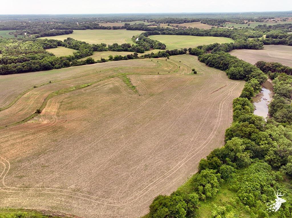 This tract of land is very diverse with recreational, agricultural and investment opportunities. The property is sloped which allows for several build site locations along the south side of the property. Outstanding creek bottom timber and terrain lines the north and west side of the property. There is no shortage of buck sign and deer trails that cut through the property. Small wooded areas along Stranger Creek allow for great stand locations and bedding for deer. Roost trees for wild turkey surround the crop field. The farmland consists of 52 m/l tillable acres currently planted to soybeans with an annual cash rent payment of $4500.00. Located within minutes of Linwood, Kansas and a short commute to several major cities in Leavenworth, Douglas and Johnson counties. Take advantage of this rare opportunity to own a slice of Stranger Creek bottom ground. Showing by appointment only.
