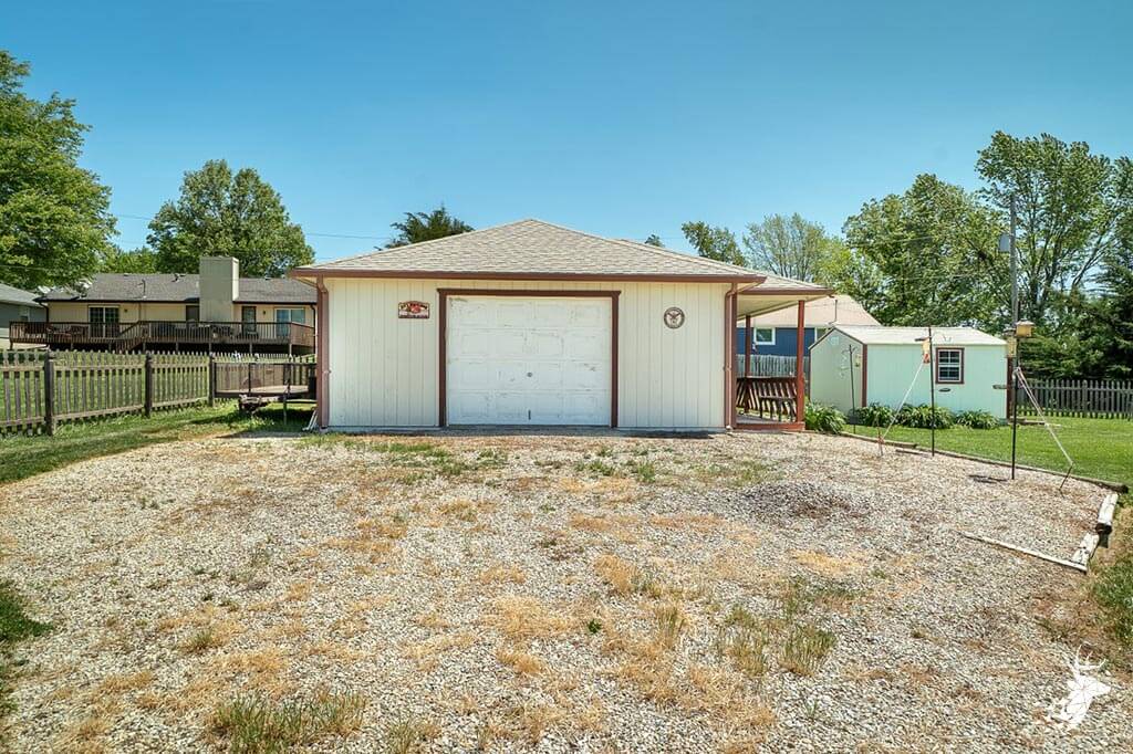 Super well cared and maintained Ranch home on a beautiful large corner lot. Everything on 1 floor. 3 BR 2.5 baths, lots of living space including brand new 16’x12′ Gary Sawyer Construction addition, beautiful kitchen with huge pantry space and dining area and steps away off the back newly poured patio to cater your cookouts in your beautifully landscaped fenced backyard! Big bedrooms & inside storm shelter. Located almost in the country on Holton’s west side. Attached 2 car garage AND (22X32) extra detached garage/shop area is just right for the do-it-yourself projects. Plus- brand new 10′ x12′ high quality “Tuff Shed” for additional storage or would make an amazing “She-shed” of your own! Welcome Home!